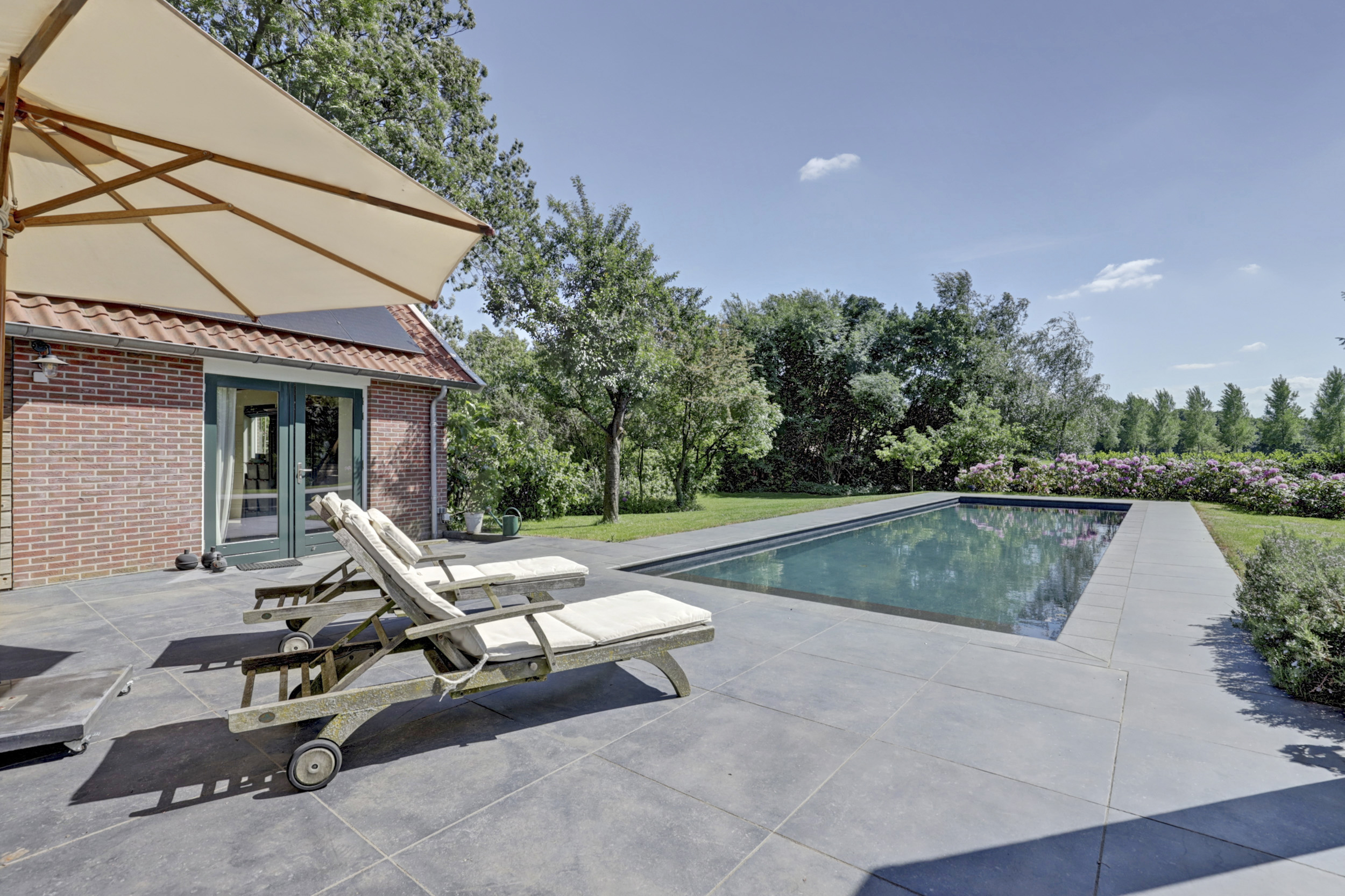 La villa de campagne Winterswijk Miste se dresse sereinement entre Winterswijk et Bredevoort, offrant 241 m² de surface habitable, une maison d’amis indépendante de 33 m² et une piscine chauffée à l’eau salée de 15 × 4 mètres, le tout sur un terrain de 2 110 m². Cette propriété conjugue l’élégance d’une maison de campagne traditionnelle à des prestations contemporaines, témoignant de sa certification énergétique classe A, d’améliorations durables modernes et de 47 panneaux solaires soigneusement intégrés.