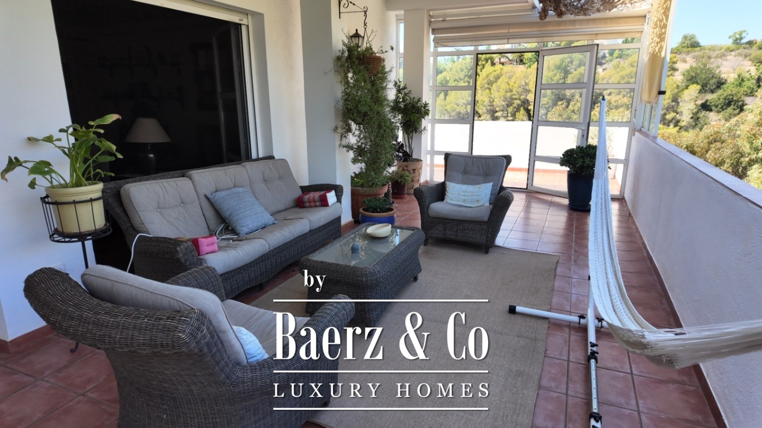 Op de begane grond bevinden zich de 4 slaapkamers met inbouwkasten en 3 badkamers, waaronder een ruime master suite. Alle kamers hebben directe toegang tot een groot overdekt terras met spectaculaire uitzichten.