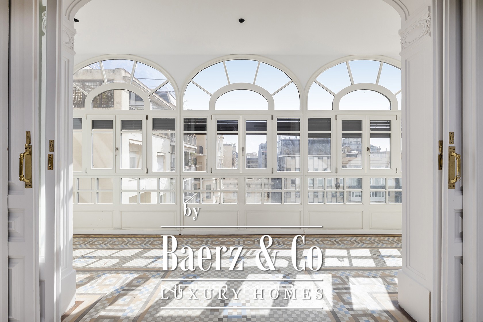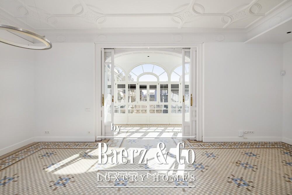 Appartement Barcelona bevindt zich in het hart van de stad en biedt 172 m² verfijnde leefruimte waar het originele modernistische karakter samensmelt met een doordachte restauratie. Bij binnenkomst vallen de gerestaureerde hydraulische vloeren en de indrukwekkende plafonds van 3,5 meter hoogte direct op, wat zorgt voor een ruimtelijk en elegant gevoel. Een zorgvuldig uitgevoerde lichtstudie optimaliseert het natuurlijke daglicht, versterkt door een lichte galerij en gerenoveerde ramen met uitzicht op een rustige Eixample-binnenplaats.