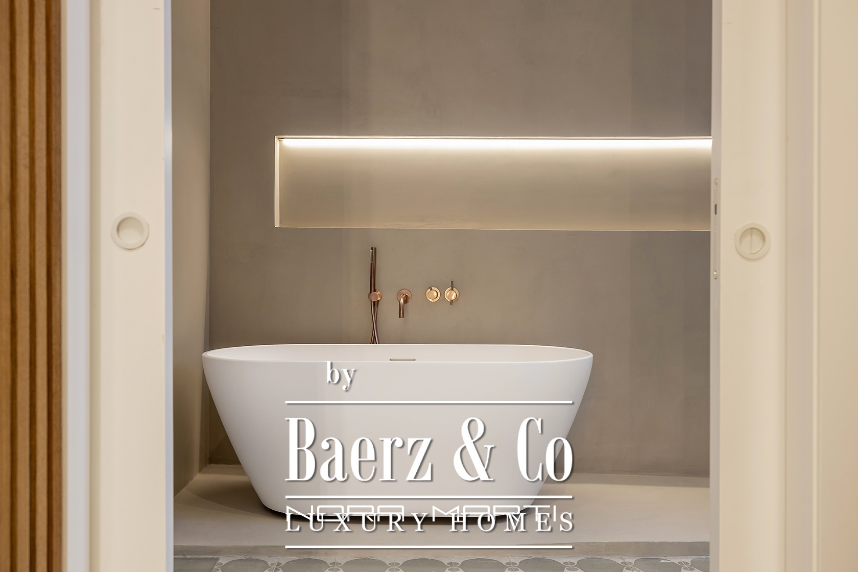 De privévertrekken bestaan uit drie slaapkamers, waaronder een master suite met eigen badkamer en kleedruimte. Twee extra slaapkamers delen een ruime tweede badkamer. De woonkamer is open en gastvrij, voorzien van een met de hand vervaardigde massief houten keuken met Miele-apparatuur, ontworpen voor zowel intimiteit als sociale momenten. Noia vloerbekleding biedt subtiele structuur onder uw voeten, terwijl luxe afwerkingen en luchtverwarming, gecombineerd met energieklasse A, gedurende alle seizoenen aangenaam comfort garanderen.