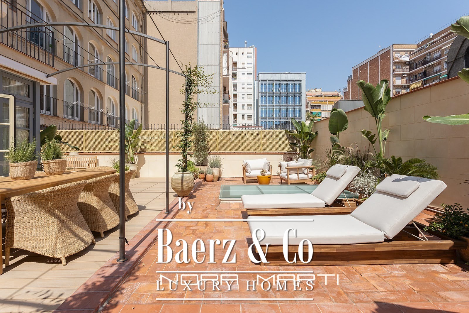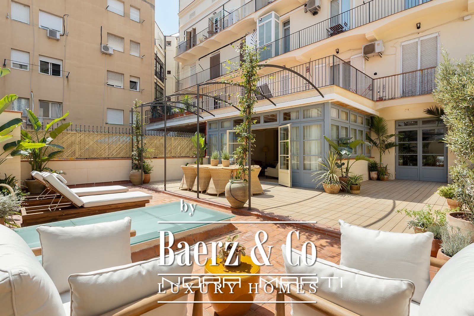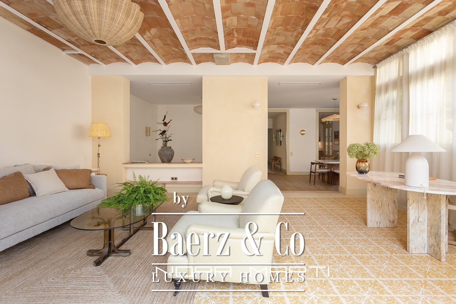 Appartement Barcelona Passeig de Sant Joan bevindt zich in het hart van de stad en biedt 200 m² verfijnde leefruimte, aangevuld met een privéterras van 100 m². Dankzij dubbele oriëntatie valt er royaal daglicht in zowel de woon- als de slaapvertrekken. De woning behoudt originele architectonische details, waaronder de karakteristieke Catalaanse gewelfde plafonds die het gehele huis doorkruisen en zorgen voor een gevoel van ruimtelijkheid en rust.
