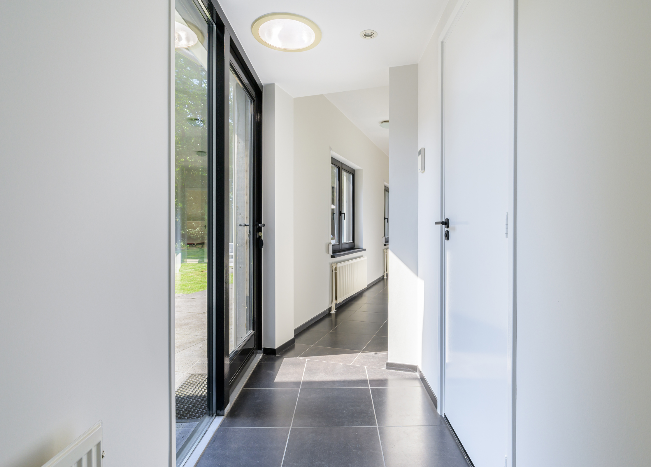 Vanuit de keuken bereikt u een aparte gang met toegang tot diverse vertrekken. Voor extra daglichttoetreding is er in deze gang een solatube geplaatst.