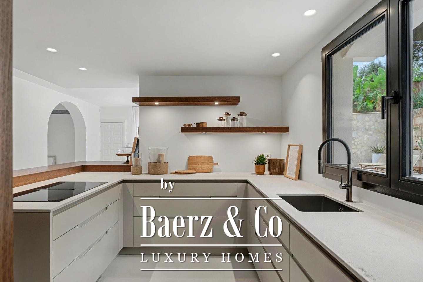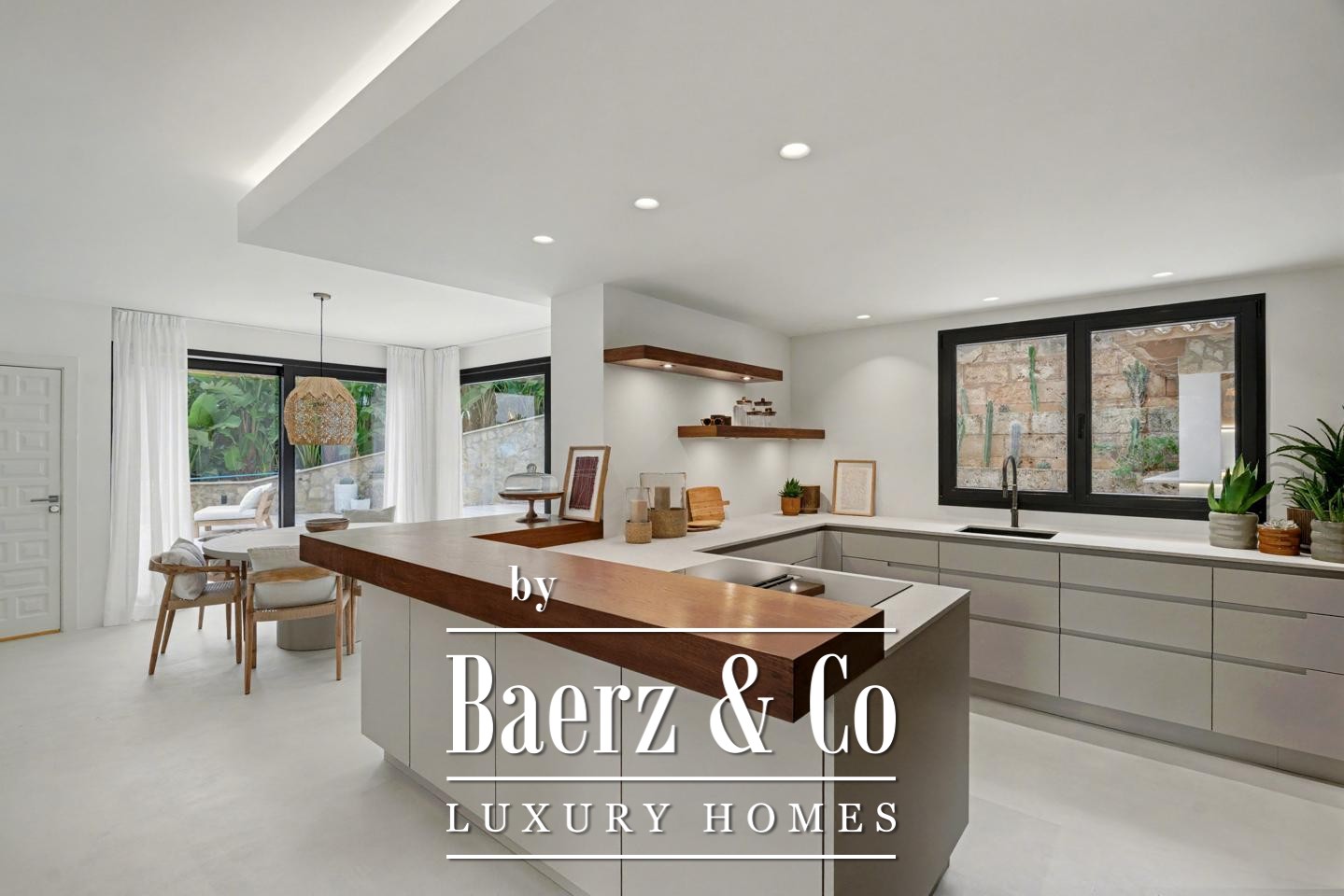 Luxe villa Costa d'en Blanes vormt een overtuigende uitnodiging tot verfijnd mediterraan wonen. Deze volledig gerenoveerde woning, gelegen in een van de meest gewaardeerde enclaves van zuidwest Mallorca, biedt een doordacht modern ontwerp, gedeeltelijk zeezicht en 320 m² aan woonoppervlak op een perceel van 920 m². De grondige renovatie combineert hoogwaardige materialen met volledig nieuw luxe meubilair, wat overal zorgt voor een ingetogen elegantie.