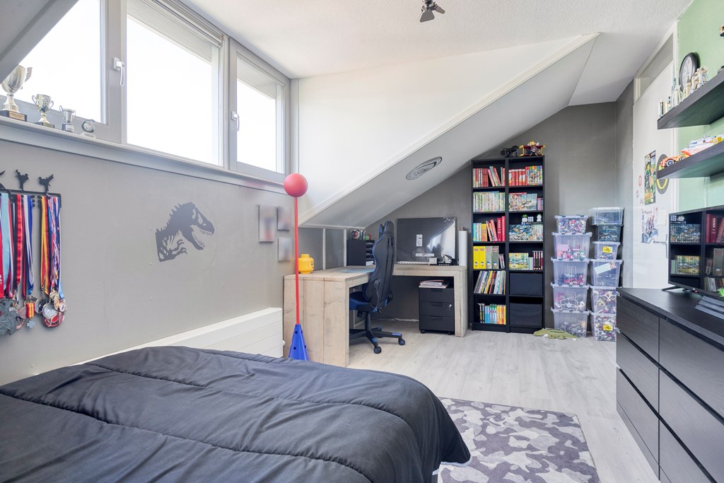 Een vlizotrap biedt toegang tot de zolderverdieping, gesitueerd in de nok van het dak. Deze ruimte is uitermate geschikt als opslagplaats voor bijvoorbeeld seizoensgebonden spullen.