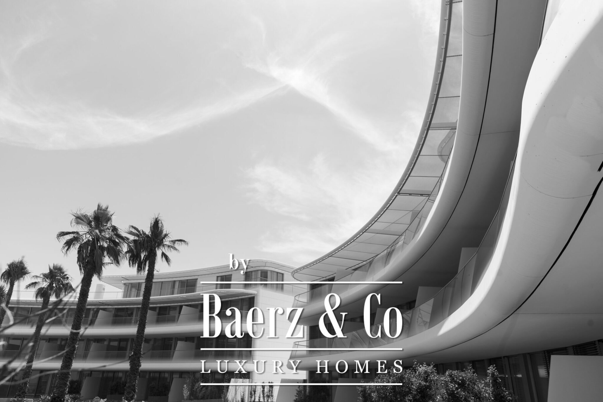 De organisch aangelegde tuinen rondom het gebouw lopen vanzelfsprekend over in het natuurlijke landschap en het zandstrand, wat rust en privacy waarborgt. Het penthouse is rijk aan lichtinval en biedt panoramisch zeezicht, hetgeen het karakter van een serene toevluchtsoord onderstreept. Iedere lijn, materiaalkeuze en ruimtelijke overgang is zorgvuldig overwogen voor een verfijnde kwaliteitsbeleving.