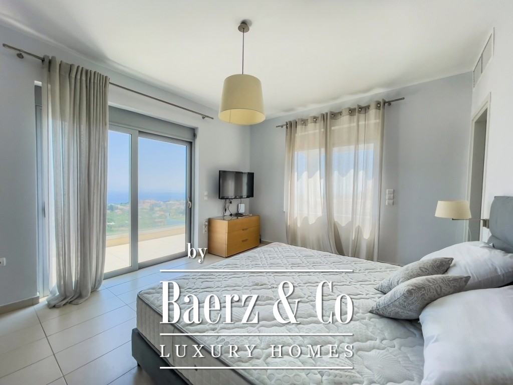 Vrijstaande woning Kariotika nodigt uit tot rust en bewuste beleving, verspreid over 384 m² woonoppervlakte op een perceel van 691 m². De woning beslaat drie niveaus, elk gekenmerkt door heldere vormgeving en oog voor zowel het dagelijkse leven als bijzondere momenten. Een gevoel van ruimte verwelkomt u bij binnenkomst: de begane grond combineert een royale open leefruimte met een Petco-keuken, een op maat gemaakte bar en brede schuifpuien die een onbelemmerd zeezicht omlijsten. De aanwezigheid van een energiezuinige open haard en directe toegang tot een verwarmd zwembad van 59 m² zorgen voor een uitnodigende, solide sfeer, aangevuld met een fitnessruimte voor ontspanning en herstel.