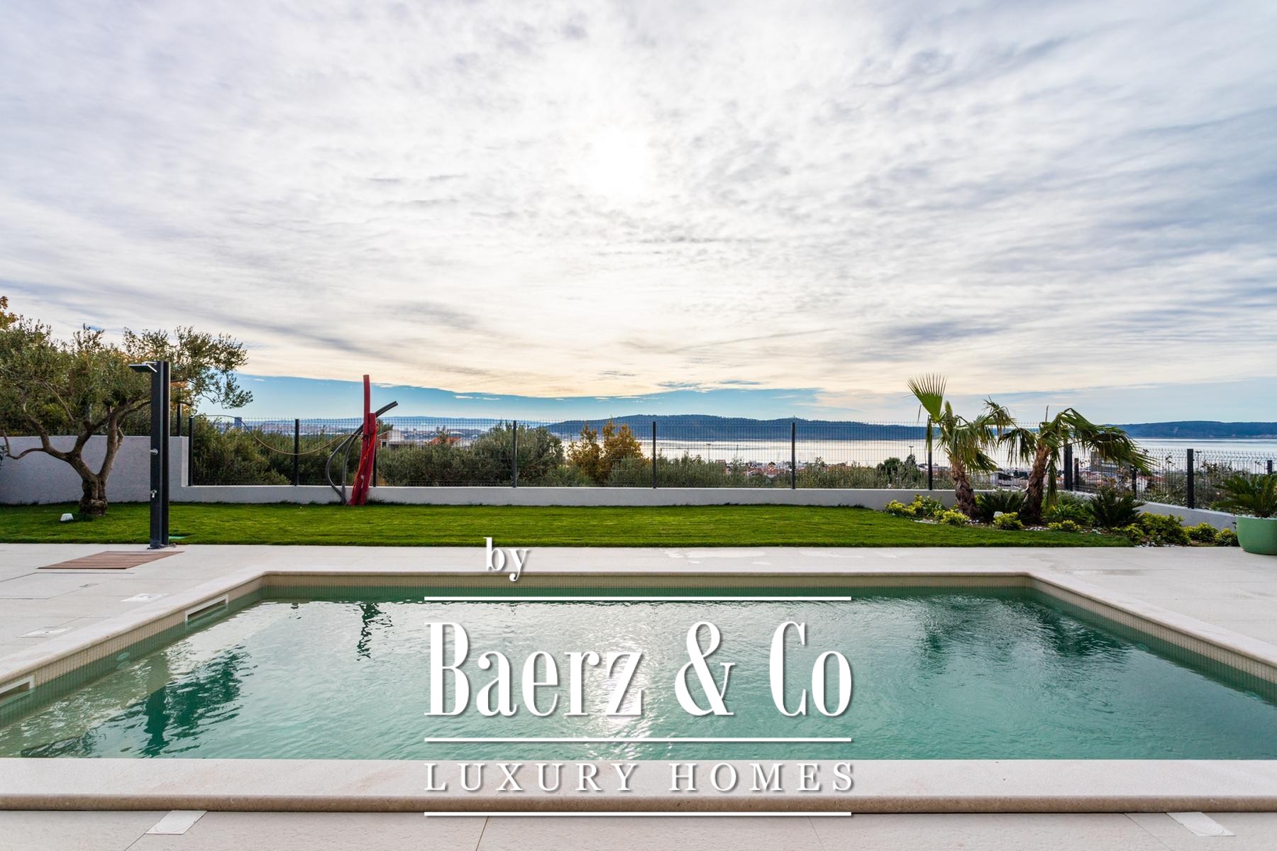 Villa Kaštela vertegenwoordigt een volledig moderne woning in een van de meest veelbelovende kustgebieden van Kroatië. Deze villa in Kaštela staat op een perceel van 490 m² en biedt 320 m² zorgvuldig ontworpen leefruimte verspreid over drie lagen, waarbij helderheid van ontwerp en een ingetogen gevoel van privacy centraal staan.