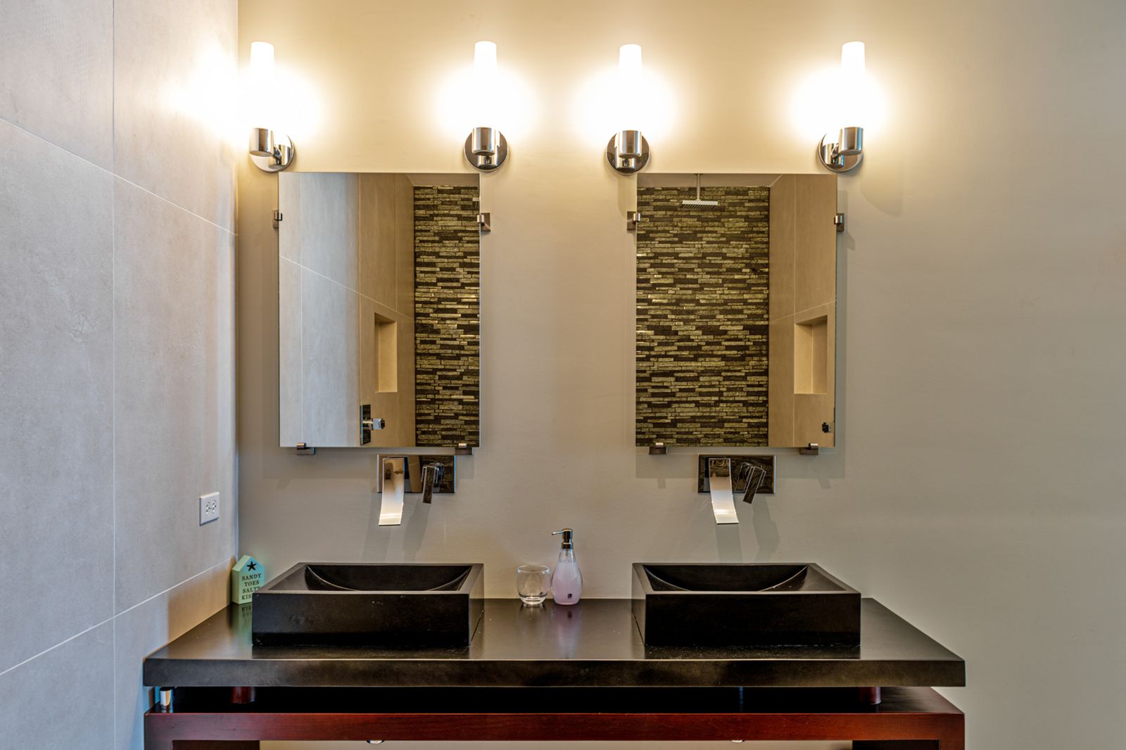 De master suite, met uitzicht over zee en een luxe vrijstaand bad, vormt een intieme en ontspannen retreat, perfect om te genieten van de wereldberoemde zonsondergangen van Bonaire.