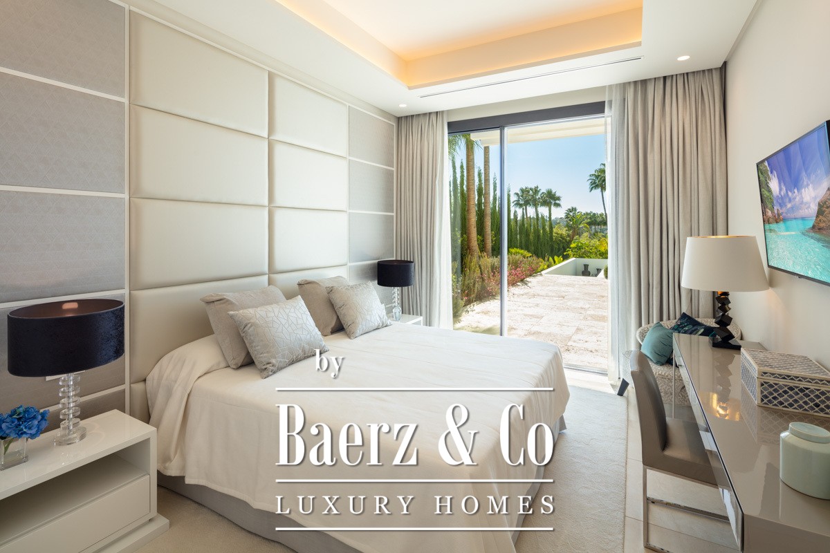 Een moderne keuken en aparte eetruimte versterken het gemeenschappelijke karakter en bieden directe toegang tot buiten, ideaal voor samenzijn of rustige contemplatie. Zes slaapkamers en zes badkamers garanderen privacy en ruimte, met enkele kamers gericht op het ochtendlicht en het golfbaanlandschap. Op de benedenverdieping nodigen een ruime entertainmentruimte en wijnkelder uit tot ontspanning en maatwerk, terwijl voorzieningen als een lift, airconditioning, vloerverwarming en een BBQ-zone comfort bieden in elk seizoen. De nabijheid van voorzieningen, het strand en het levendige centrum van Marbella maken dit tot een exclusief thuis dat zowel geborgenheid als verbinding biedt.