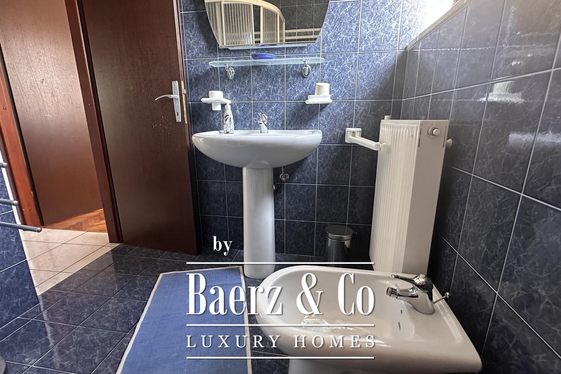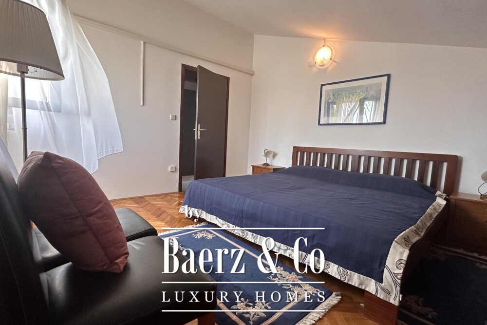 De hoofdverdieping, op het zuiden georiënteerd, opent naar een entreehal met een soepele overgang naar het eet- en woongedeelte. Licht stroomt binnen via de loggia en royale vertrekken, waar nog twee slaapkamers en een badkamer deze verdieping compleet maken. Op de bovenste etage bevindt zich een appartement met twee slaapkamers en een open terras dat een weids uitzicht op de Adriatische Zee biedt en de horizon bij zonsondergang prachtig omlijst.