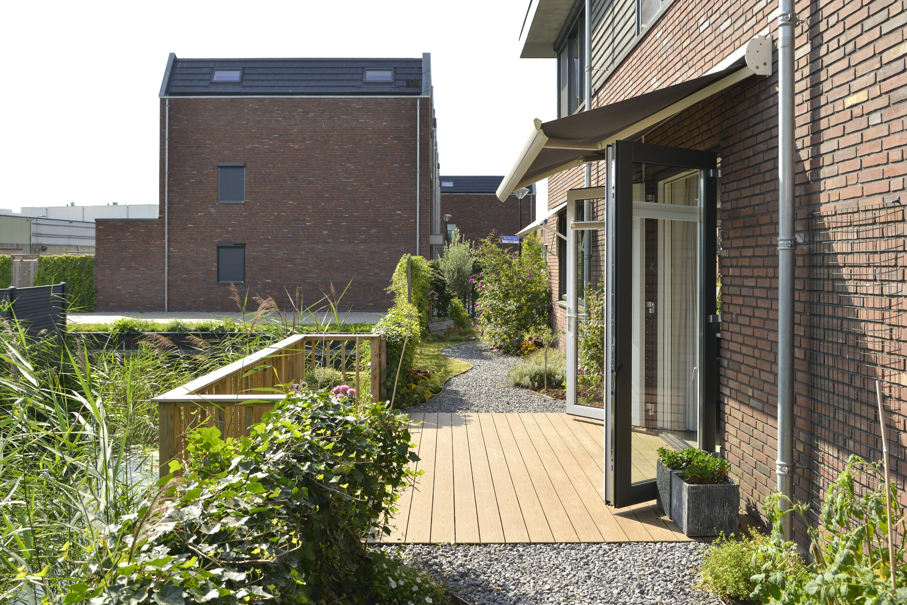 De buitenruimte van deze villa is een verlengstuk van het woongenot. Via de royale oprit met antraciet grind – met plaats voor twee auto’s en een eigen laadpaal op eigen terrein – bereikt u de houten schuur, compleet met elektriciteit, verlichting en een praktische overkapping. Langs de achterzijde van de woning voert een charmant grindpad, geflankeerd door een sierlijke border met beplanting, u naar het eerste terras. Dit terras, uitgevoerd in onderhoudsarme composiet planken, ligt direct achter de keuken en grenst aan het sierwater. Hier, op het oosten, start u de dag in alle rust met de ochtendzon en een vers kopje koffie. Het pad slingert verder langs het water, omgeven door groen, naar het zonnige hart van de tuin op het zuiden. Hier vindt u een ruim terras bij de woonkamer, momenteel voorzien van een zonnescherm, maar met volop mogelijkheden om een stijlvolle overkapping te realiseren. Aansluitend strekt zich een verzorgd gazon uit, omrand door beplanting en een strakke beukenhaag. Of u nu wilt ontspannen, tuinieren, of gasten ontvangen – deze tuin biedt het allemaal, met als extra pluspunt het prachtige uitzicht over het sierwater.