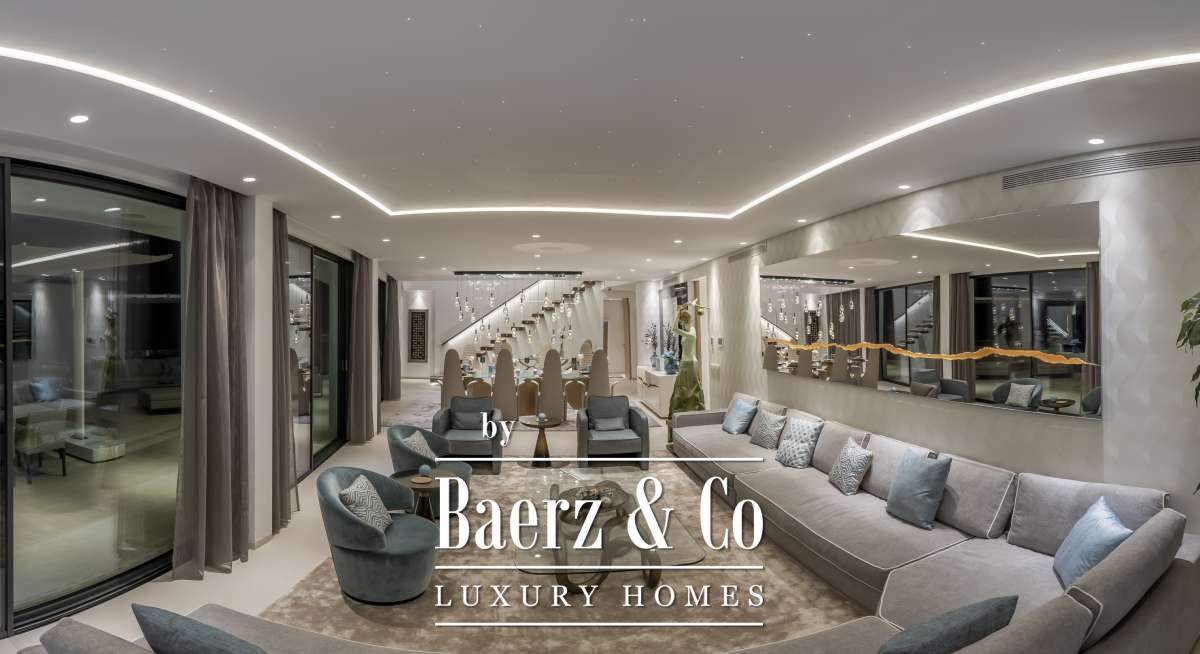 De OmgevingIn het prestigieuze en beveiligde wooncomplex Roca Llisa, een van de beste locaties van Ibiza, ligt de stijlvolle Villa Las Dos Lunas. De villa biedt een weids uitzicht over de zee én een prachtig panorama over de bergen. De schitterende zonsondergangen maken deze rustige en privé omgeving compleet, terwijl Ibiza-stad, de havens en de luchthaven binnen enkele minuten bereikbaar zijn.De Villa & IndelingDe villa straalt modern design en verfijning uit. Grote drievoudig beglaasde schuifdeuren verbinden binnen en buiten naadloos. De ruime woonkamer met open haard vormt het warme hart van de woning.De moderne designkeuken beschikt over Miele-apparatuur, een inloopkoelkast en een osmosesysteem. Een geavanceerd domotica-systeem en vloerverwarming zorgen overal voor optimaal comfort.De spa- en wellnessruimte met sauna, yoga- en fitnessruimte biedt een ideale plek voor ontspanning. Verder zijn er een bioscoop, een feestzaal, meerdere gastensuites en een volledig zelfstandig gastenverblijf.BuitenruimteDe weelderige mediterrane en tropische tuin vormt een prachtig decor rondom de villa. De infinity pool met watervallen en sfeerverlichting zorgt voor een serene, luxe sfeer. Vijf terrassen met 600 m² bieden ideale plekken om te dineren, te ontspannen of te genieten van het uitzicht op zee, bergen en avondlucht.Villa Las Dos Lunas is een oase van rust, elegantie en luxe – een uitzonderlijke woonbeleving op een van de mooiste locaties van Ibiza.