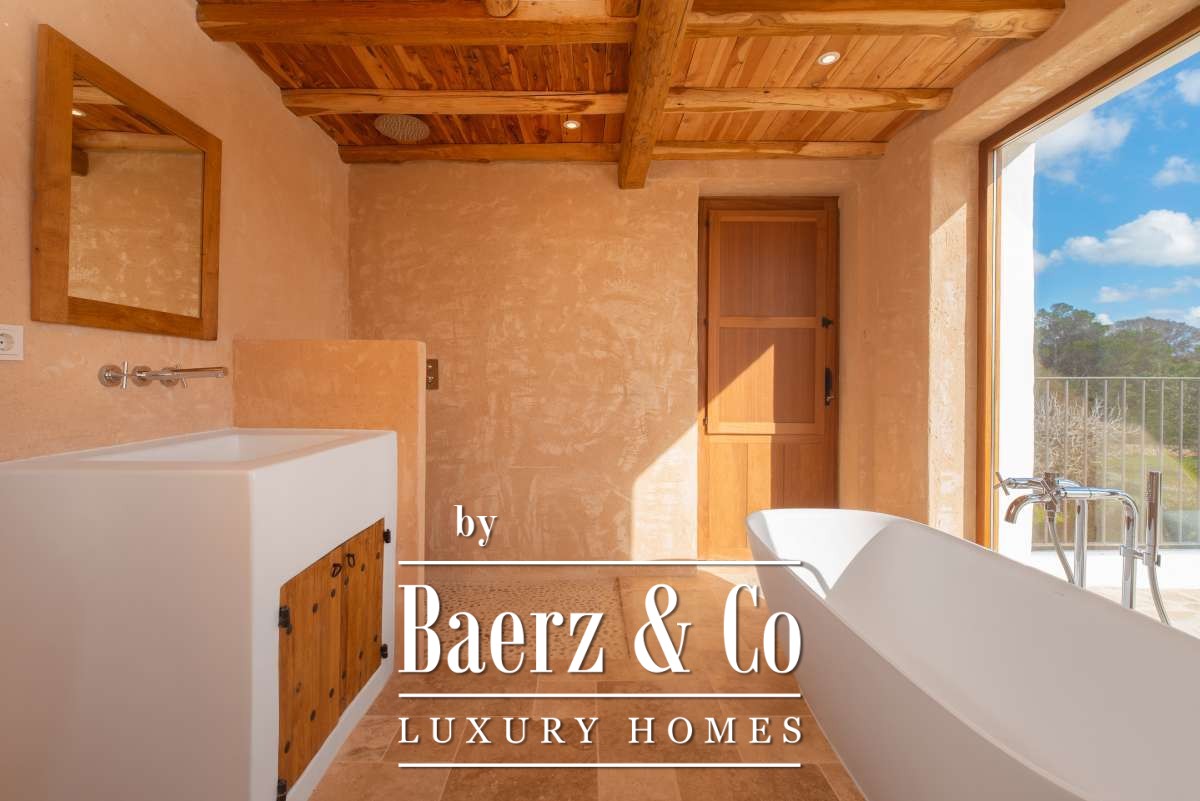 De omgevingTe midden van het betoverende landschap van centraal Ibiza ligt deze bijzondere finca, verscholen tussen de uitgestrekte natuur, bosrijke heuvels en vruchtbare landerijen. Het perceel van bijna twee hectare biedt een ongekende privacy en een gevoel van pure vrijheid, terwijl het uitzicht zich uitstrekt over het glooiende binnenland en de mediterrane vegetatie. De ligging tussen Santa Gertrudis en Sant Rafel maakt deze plek ideaal voor wie de authentieke rust van het eiland zoekt, maar toch binnen enkele minuten verbonden wil zijn met levendige dorpjes, internationale scholen en de mooiste stranden. Een harmonieuze balans tussen gemak en totale sereniteit.De villaDeze onlangs prachtig gerenoveerde finca is een toonbeeld van elegantie en raffinement. Het historische karakter is zorgvuldig behouden, terwijl moderne elementen en hoogwaardige materialen het wooncomfort naar een eigentijds niveau tillen. Met een totaal woonoppervlak van 267 m² biedt het huis royale ruimtes die warm aanvoelen en tegelijkertijd een luxe uitstraling hebben.Bij binnenkomst word je welkom geheten door lichte leefruimtes met natuurlijke texturen, zichtbare stenen muren en zachte kleuren die perfect aansluiten bij de koloniale finca-stijl. De keuken en woonkamers vloeien harmonieus in elkaar over, ideaal voor lange diners of ontspannen avonden met vrienden en familie. De slaapkamers, ruim, elegant en rustgevend, bieden elk hun eigen gevoel van privacy. De master bedroom op de bovenverdieping is een waar hoogtepunt, met weids uitzicht dat ’s avonds wordt versierd door de twinkelende lichtjes van Dalt Vila, een scène die nooit verveelt.De buitenruimtesDe buitenruimte is ontworpen om in alle seizoenen intens te kunnen genieten van het mediterrane leven. Een strak privézwembad vormt het middelpunt van de zonnige terrassen, omgeven door een fraai aangelegde tuin die naadloos overloopt in de natuurlijke omgeving. Schaduwrijke plekken onder volwassen bomen, ruime loungezones en een panoramisch uitzicht maken dit tot een paradijs voor levensgenieters. Het royale perceel van 19.187 m² zorgt voor een gevoel van rust, ruimte en volledige afzondering.Deze finca is niet zomaar een woning; het is een unieke samensmelting van historie, luxe en natuur. Een zeldzame kans voor wie op zoek is naar een exclusieve plek die de ziel van Ibiza ademt. Beleef het zelf, een bezichtiging zal je ongetwijfeld overtuigen.