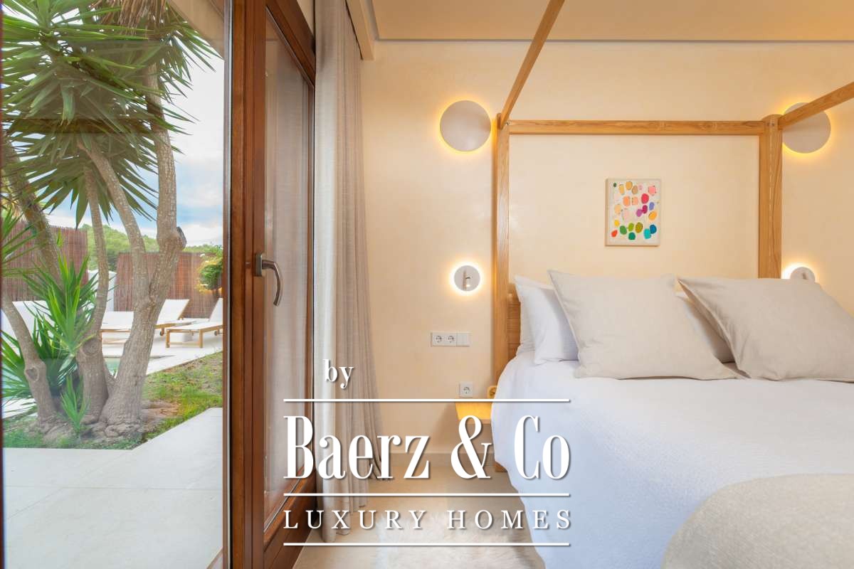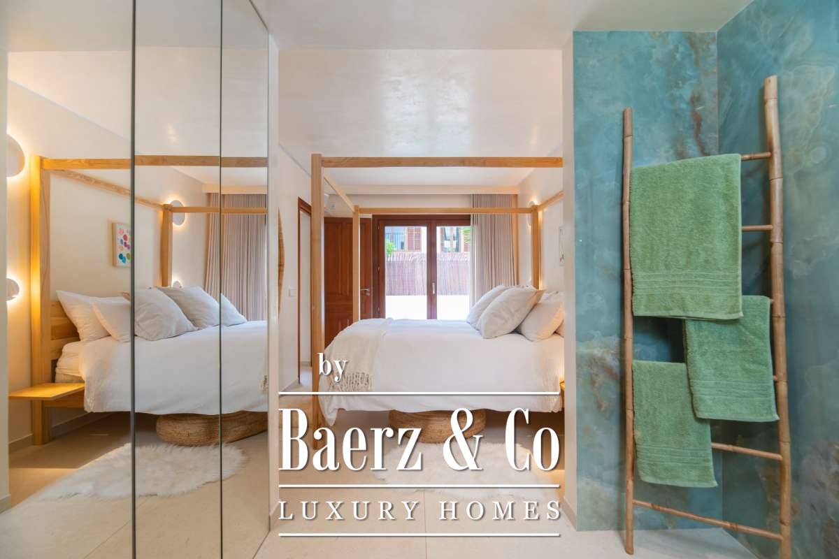 De omgevingEen zeldzame parel in het hart van Santa Gertrudis, een van de meest geliefde dorpen van Ibiza, waar eilandcharme, stijl en gemeenschapsgevoel moeiteloos samenkomen. Op slechts een korte wandeling van het levendige dorpscentrum, vol cafés, kunstgalerijen, boetieks en bekende restaurants, bevindt zich dit huis in een rustige woonwijk die zowel privé als goed verbonden aanvoelt. Dankzij de centrale ligging op het eiland biedt deze plek snelle toegang tot prachtige stranden, Ibiza-stad en de luchthaven. Santa Gertrudis staat bekend om zijn gastvrije sfeer, creatieve energie en authentieke mediterrane levensstijl.Het appartementDit prachtig afgewerkte appartement op de begane grond van 129 m², met een privéterras van 72 m², is volledig instapklaar en doordacht ontworpen om ingetogen luxe te bieden in combinatie met een eenvoudige, onderhoudsarme levensstijl. Het 57 m² grote interieur voelt kalm en uitnodigend, met een woonruimte die via grote deuren naadloos overloopt naar het terras, wat een natuurlijke en harmonieuze woonervaring creëert.De moderne keuken is stijlvol geïntegreerd in de leefruimte en uitgerust met kwalitatieve apparatuur, waardoor het dagelijks leven moeiteloos wordt. Het appartement beschikt over twee comfortabele slaapkamers, beide ontworpen voor privacy en ontspanning, evenals een verfijnde badkamer die is afgewerkt met hoogwaardige materialen.Dit huis biedt de perfecte balans tussen elegantie en functionaliteit, ideaal als ‘lock-and-leave’ woning maar ook zeer geschikt voor permanent wonen.Parkeren is beschikbaar direct voor het gebouw, wat een praktische optie biedt voor bewoners en gasten.Gasten kunnen bovendien eenvoudig en professioneel binnenkomen zonder aan te bellen, dankzij de mogelijkheid om de hoofdpoort van het gebouw open te laten voor geplande aankomsten, een discrete en praktische oplossing voor bezoekers of dienstverleners.De buitenruimtesHet meest opvallende kenmerk van dit appartement is het indrukwekkende privéterras van 72 m², een zeldzaamheid in het centrum van Santa Gertrudis. Ontworpen voor echt eilandleven, biedt het een stijlvolle loungehoek en een eetgedeelte voor lange avonden buiten. Het privézwembad voegt een extra niveau van comfort toe, perfect om af te koelen, te ontspannen of te genieten van warme Ibiza-middagen in volledige privacy.Deze buitenruimte vormt een prachtige verlenging van de leefomgeving en laat u het uitzonderlijke klimaat van het eiland het hele jaar door optimaal ervaren.