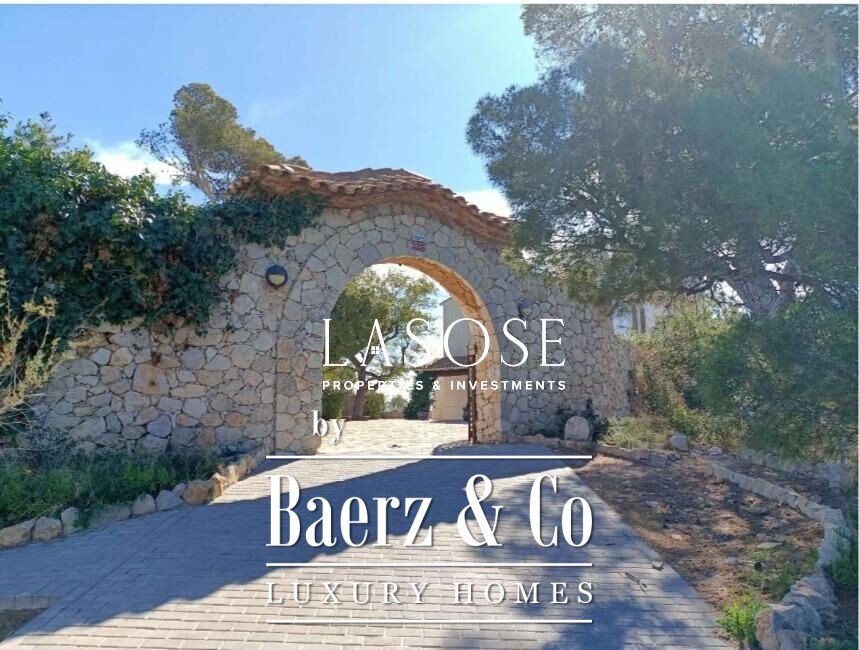 Villa Sitges ligt majestueus op de kliffen van Aiguadolc en biedt een onovertroffen uitzicht over beschutte baaien en de uitgestrekte Middellandse Zee. De villa verwelkomt u via een privéoprit en een met volgroeide beplanting omzoomd pad van kinderkopjes, dat leidt naar de hoofdpoort en een uitgestrekte tuin van 1.054 m² die klaar is voor vernieuwing.