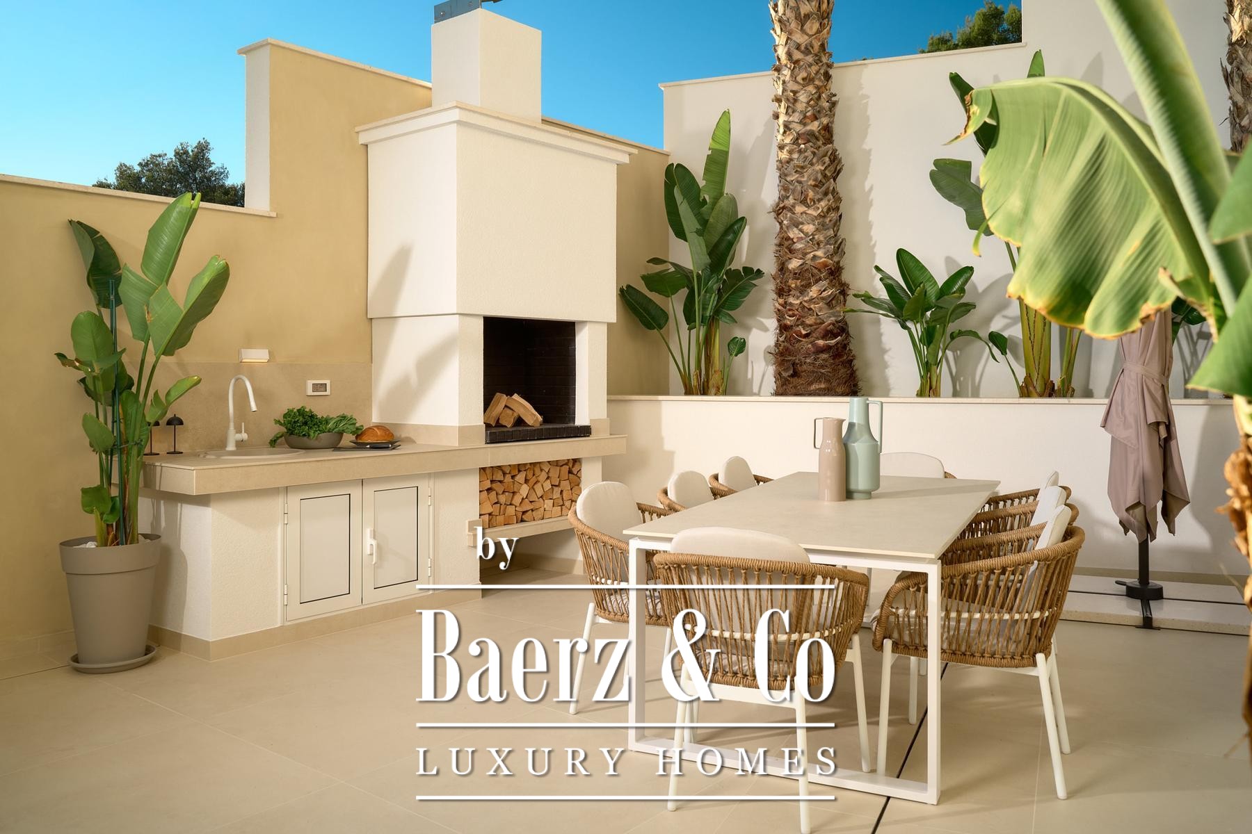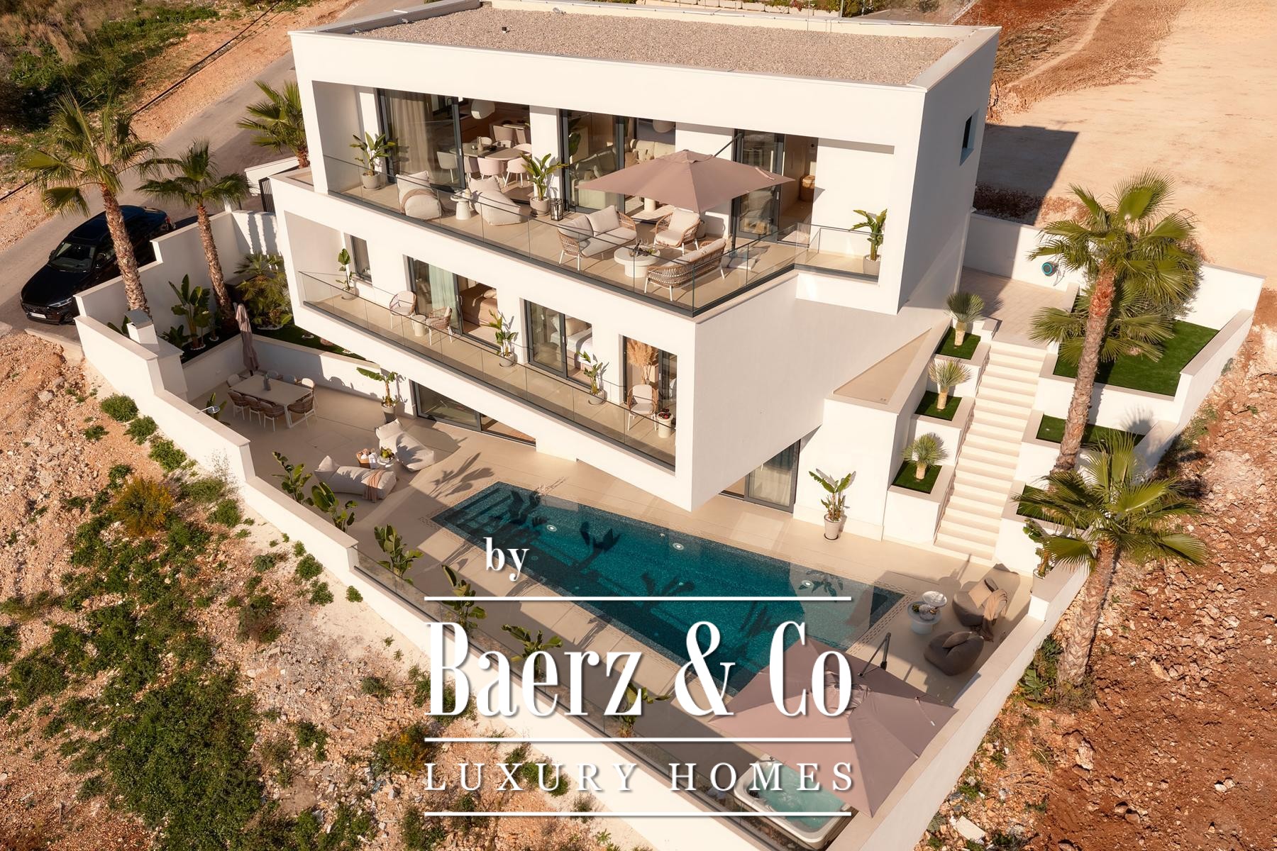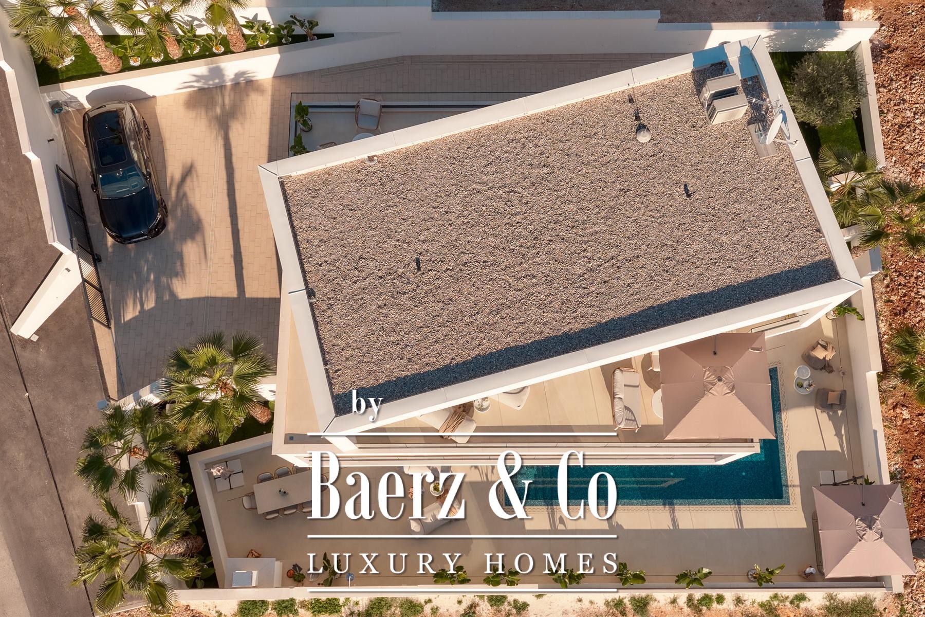 De bouwkwaliteit is compromisloos met plafondairconditioning, vloerverwarming via warmtepompen, gebalanceerde ventilatie, thermische isolatie, aluminium kozijnen, glazen balustrades, zonnepanelen, automatische tuinirrigatie en videobewaking. Twee onoverdekte parkeerplaatsen en mediterrane tuinaanleg completeren het geheel.