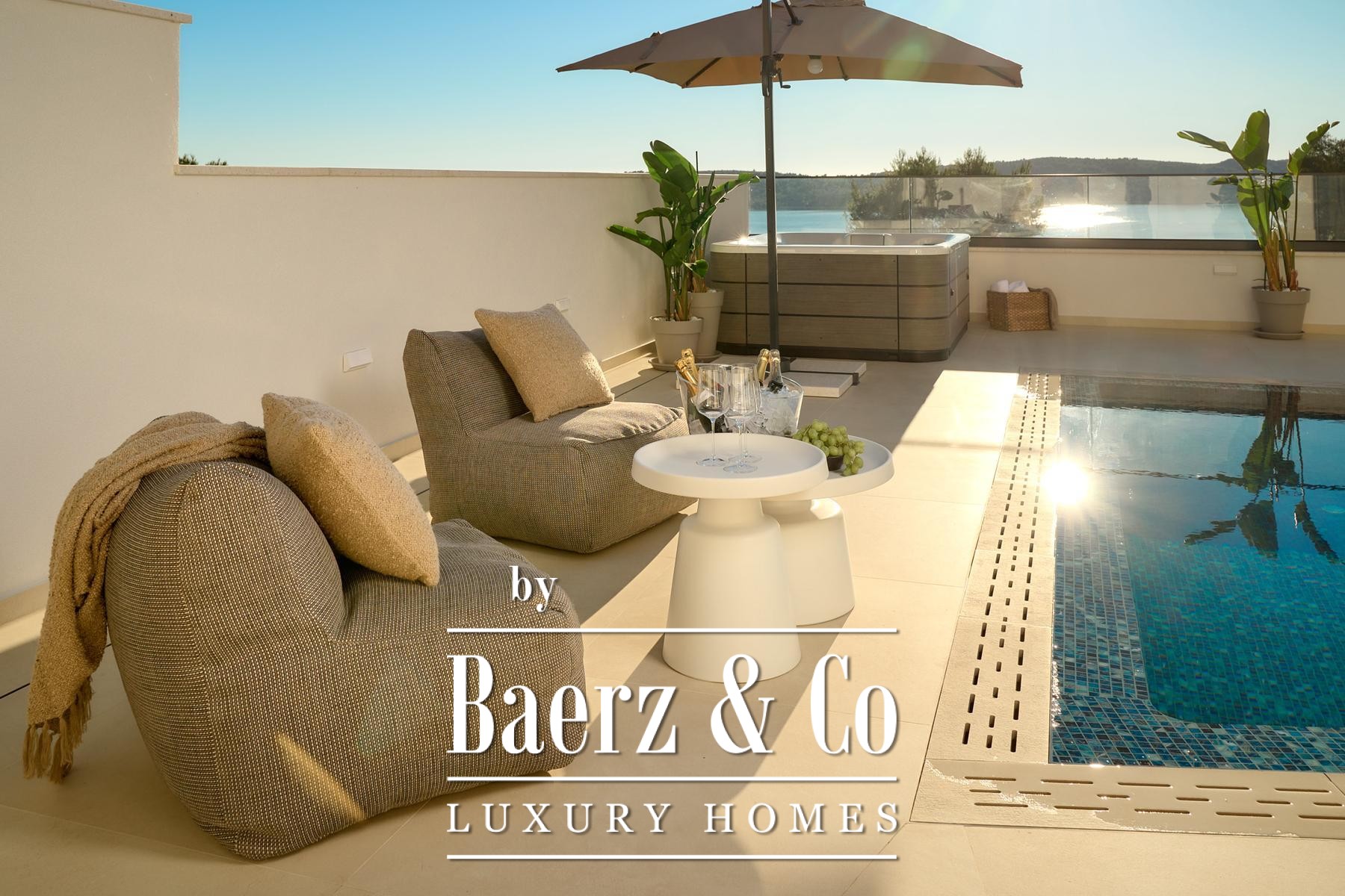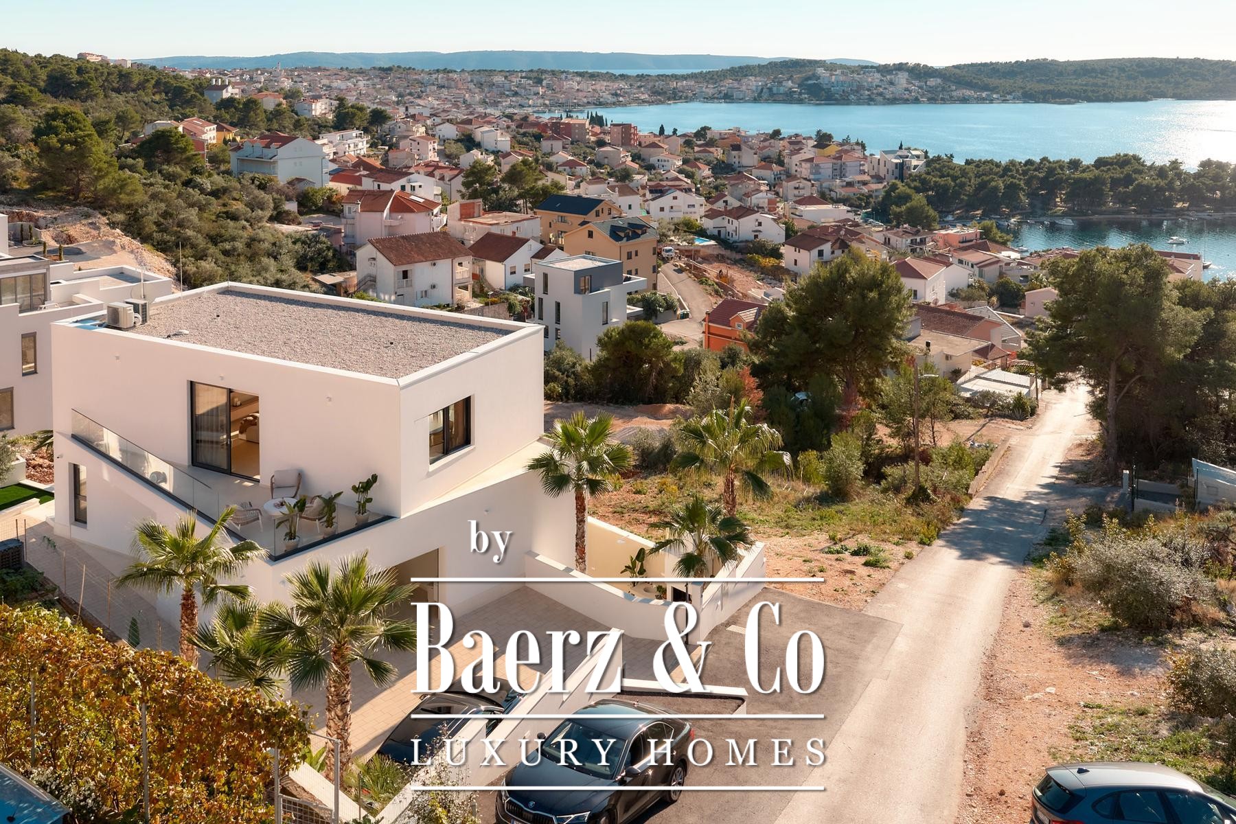 Gelegen op slechts enkele meters van de zee, 330 meter van het strand, 500 meter van winkels en vlakbij Trogir, Split Airport en de stad Split, belichaamt deze moderne villa in Trogir ingetogen luxe — ideaal als verfijnde gezinswoning of strategische investering.