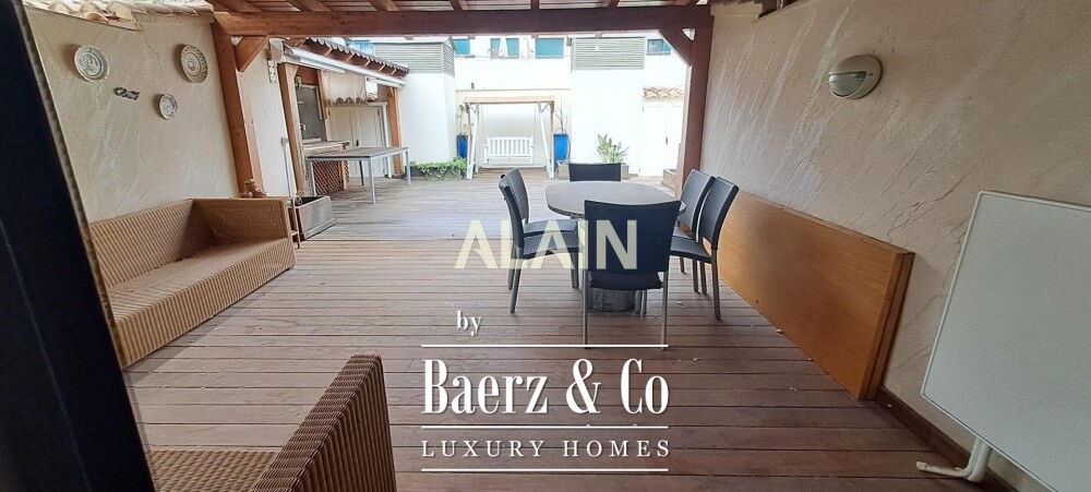 De recente, zorgvuldige renovatie uit zich in hoge plafonds, optimale ventilatie en moderne afwerking. De privé chill-out zone en buitenkeuken met barbecue creëren de perfecte setting voor informele samenkomsten en ontspannen avonden. Twee gereserveerde parkeerplaatsen in de garage horen bij het appartement; ingebouwde kasten, verwarming, airconditioning en zorgvuldig geselecteerd meubilair completeren het wooncomfort.