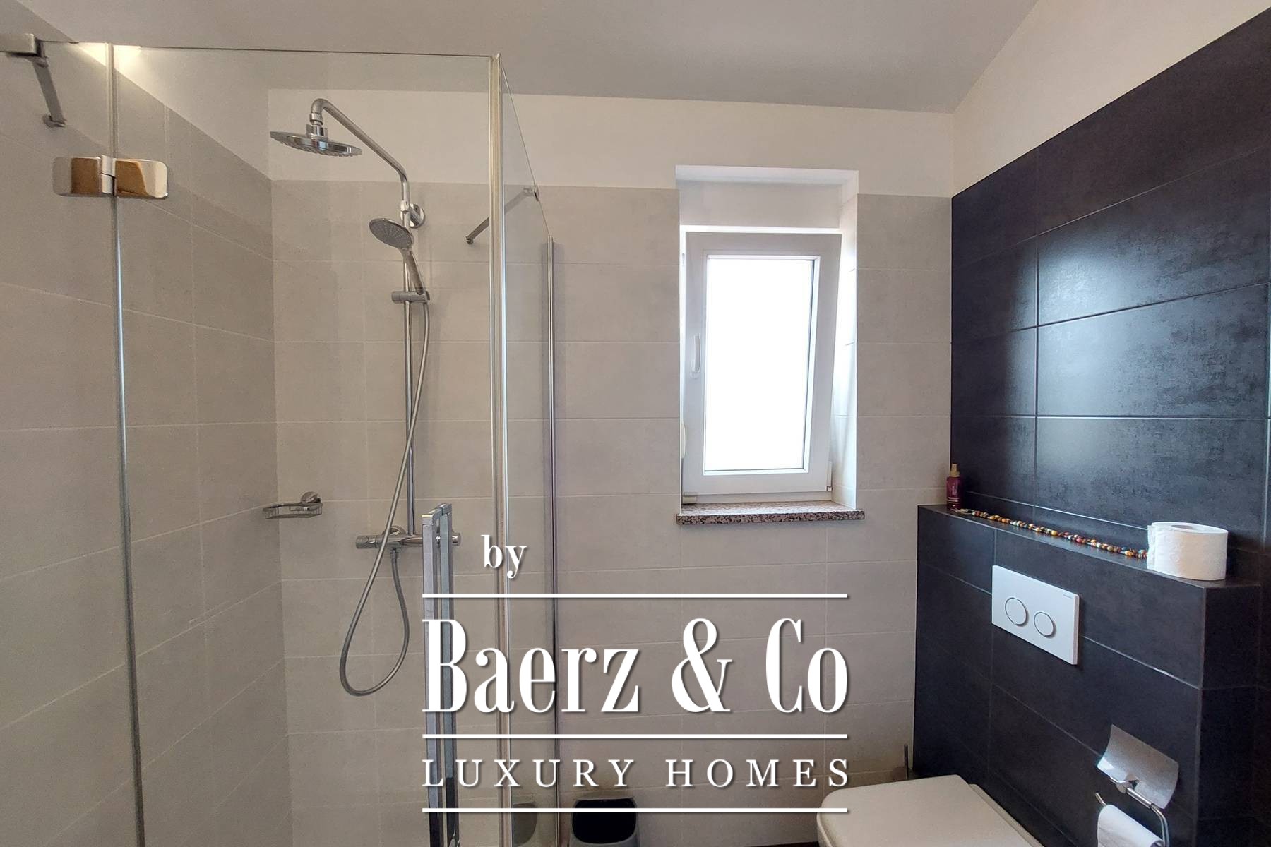 Via de interne trap bereikt u de eerste verdieping met drie extra slaapkamers. Twee daarvan beschikken over een eigen badkamer en openen naar een ruime terras met weids uitzicht op zee en de Brijuni-eilanden. De derde kamer is ingericht als flexibele werkkamer en profiteert optimaal van het natuurlijke licht. Het huis biedt comfort op elk niveau, met een alarmsysteem, camerabewaking, gasvloerverwarming, airconditioning in elke ruimte, zonnepanelen en een boiler van 800 liter.
