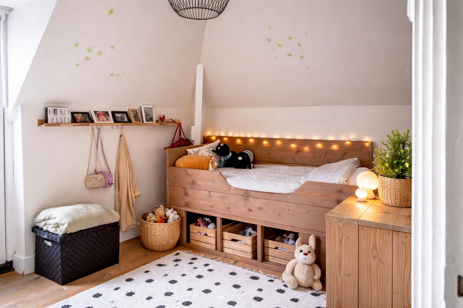 На первом этаже оригинальный холл с терраццо ведет в просторную гостиную с эркером и дровяной печью. Открытая кухня с островом и качественной техникой плавно выходит в зимний сад и подсобное помещение. Игровая, вторая мини-кухня и дополнительная ванная обеспечивают гибкость планировки и полностью подходят для расширенного или раздельного проживания. На втором этаже три большие спальни и стильная ванная с душем и двойной раковиной; на третьем — светлая мансардная комната с кладовой.