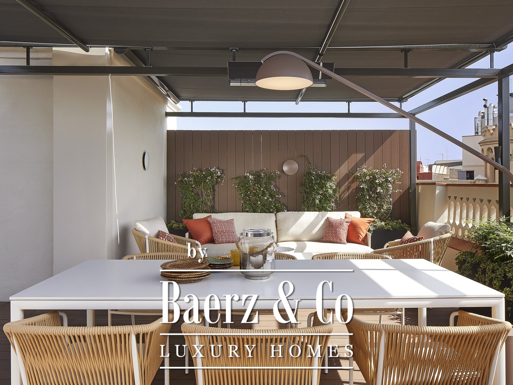 Пентхаус находится в шаговой доступности от Passeig de Sant Joan и вблизи Passeig de Gràcia, окружённый атмосферными кафе, бутиками и ресторанами высокой кухни. Здесь ритм жизни задается гармонией городской культуры, прибрежного отдыха и статусного наследия Барселоны как мирового центра дизайна. Эта уникальная недвижимость одинаково привлекательна и как уединённое частное убежище, и как стратегическая долгосрочная инвестиция для тех, кто ищет роскошный пентхаус на продажу в Барселоне.