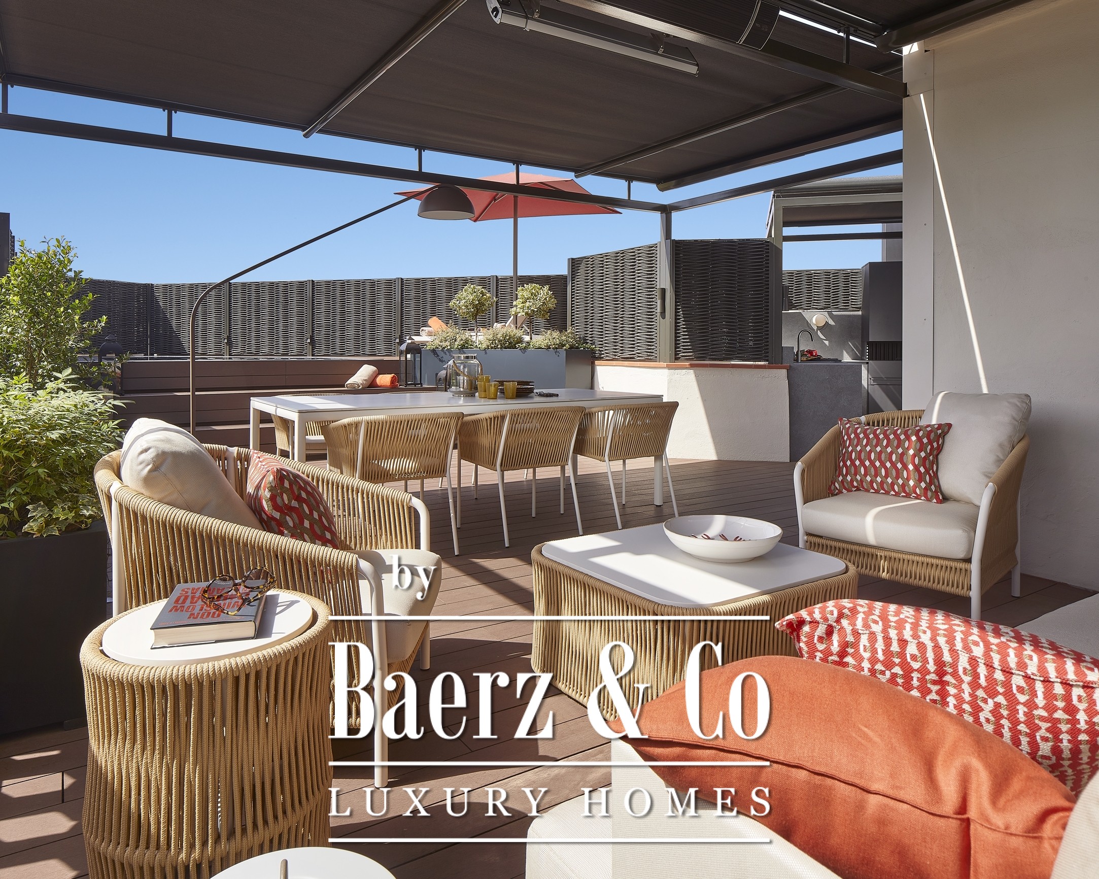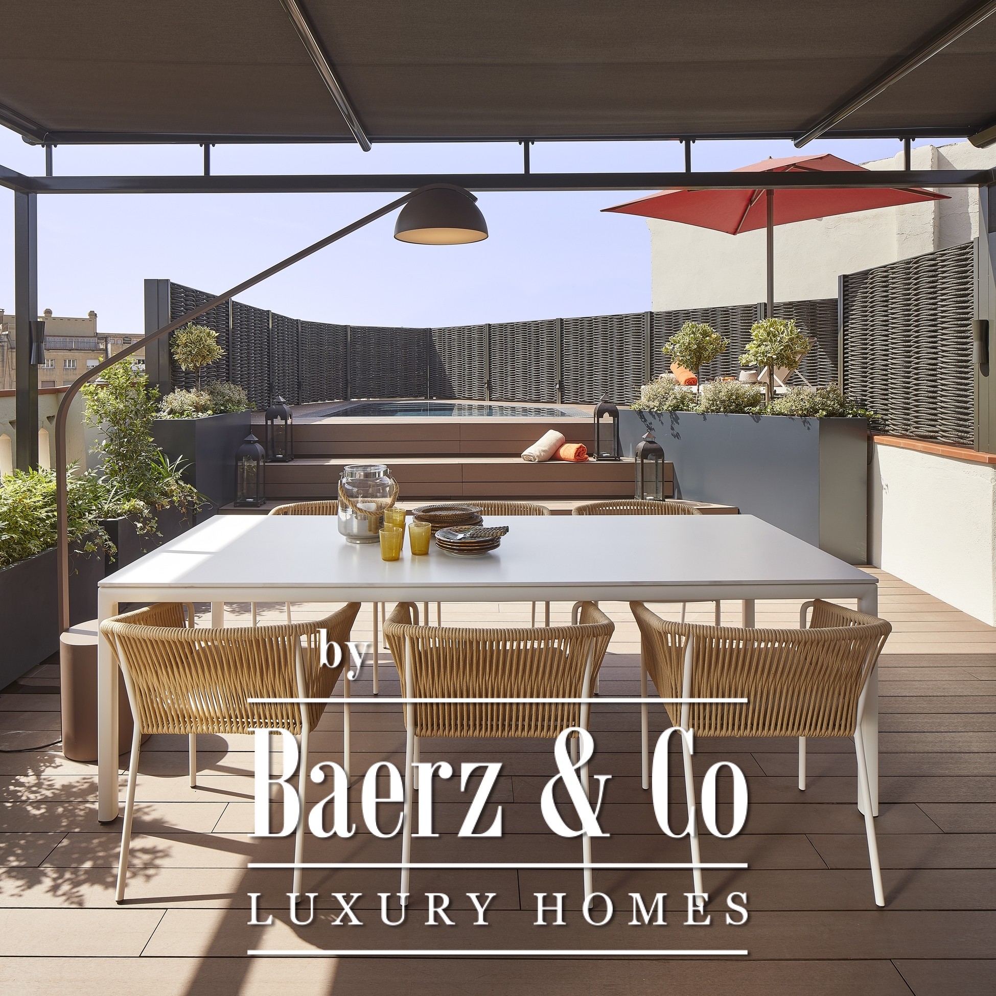 Penthouse Barcelona — это уникальное сочетание классического архитектурного наследия и тонкой современной изысканности. Этот тщательно отреставрированный пентхаус расположен в элегантном угловом здании района Эшампле и впечатляет жилой площадью 274 м², которую дополняет внушительная приватная терраса площадью 100 м². Шесть внешних балконов наполняют пространство светом, открывая интерьер с продуманной планировкой, где гостиная, обеденная зона и дизайнерская кухня органично перетекают друг в друга. Эксклюзивность резиденции подчеркивают авторская студия и эффектная лестница, ведущая к драгоценности дома — просторному саду на крыше.