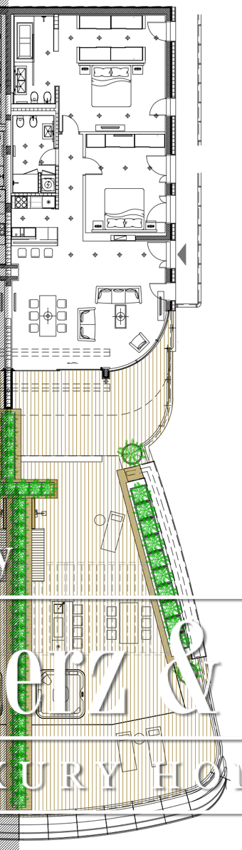 Апартаменты Budva предлагают 286 м² тщательно спланированного жилого пространства в известном роскошном курорте, всего в 50 метрах от Адриатического моря и его песчаной полосы. В планировке апартаментов предусмотрены просторный холл, гостеприимная гостиная, плавно переходящая в кухню и обеденную зону, две спальни и две ванные комнаты. Просторная терраса на крыше открывает захватывающие виды на бухту Будвы, море и окружающие горы, располагая как к уединённым размышлениям, так и к уютным встречам на свежем воздухе.