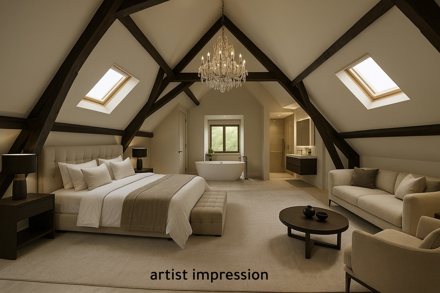 Над задним крылом на втором этаже находится открытый лофт с коньком высотой 4,5 метра и кладовой; парадное крыло предлагает еще две спальни и одну ванную комнату. Каждый аспект дома реализован с заботой о комфорте: полы с подогревом, кондиционирование, механическая вентиляция и энергоэффективные двухкамерные окна.