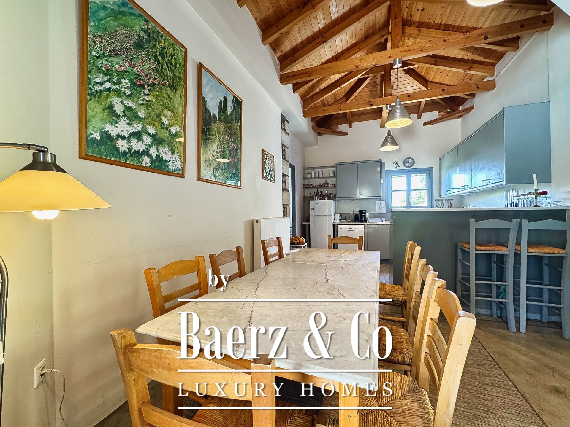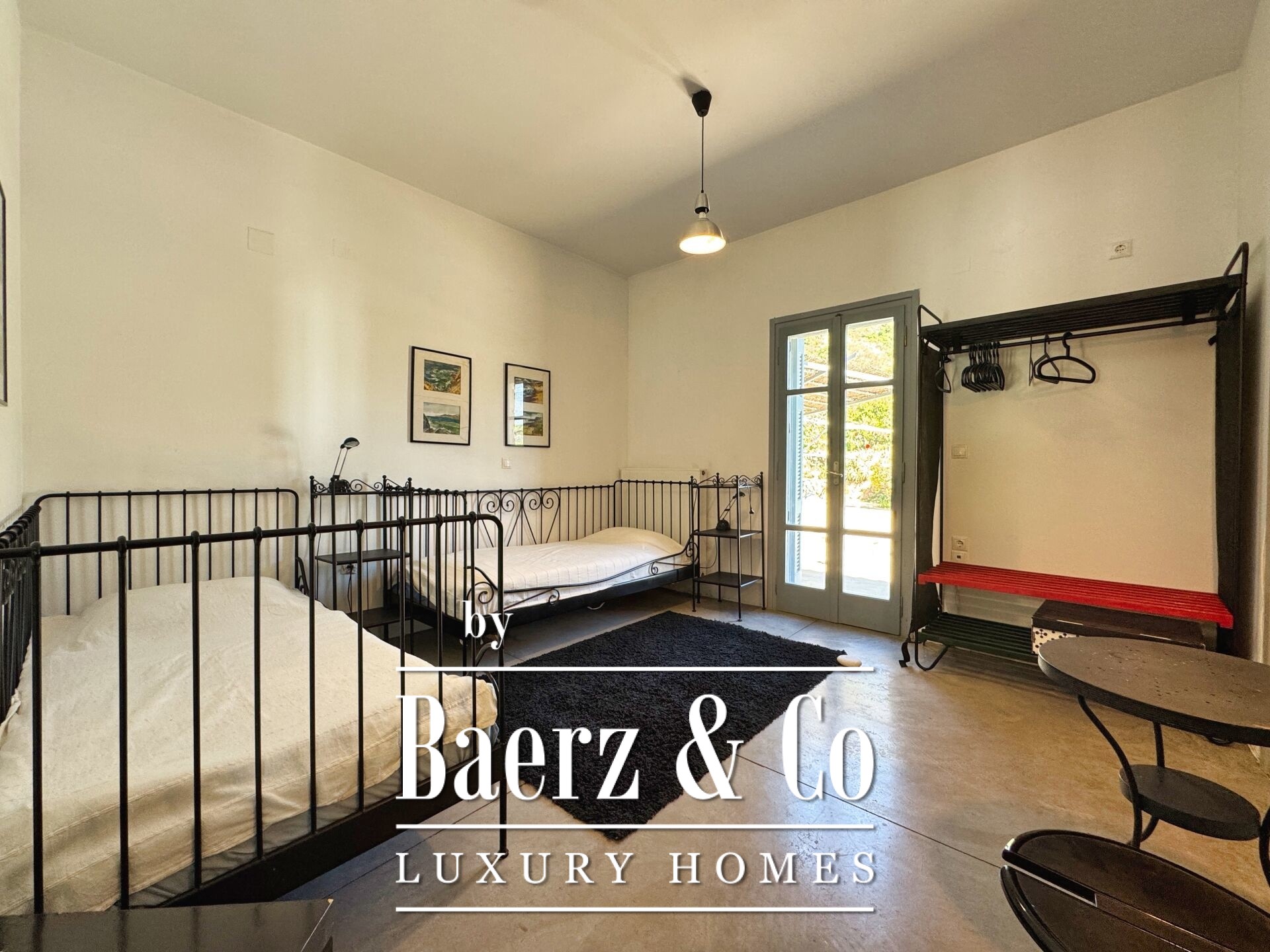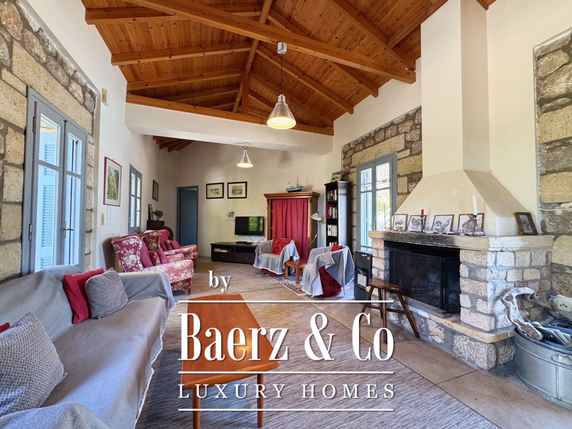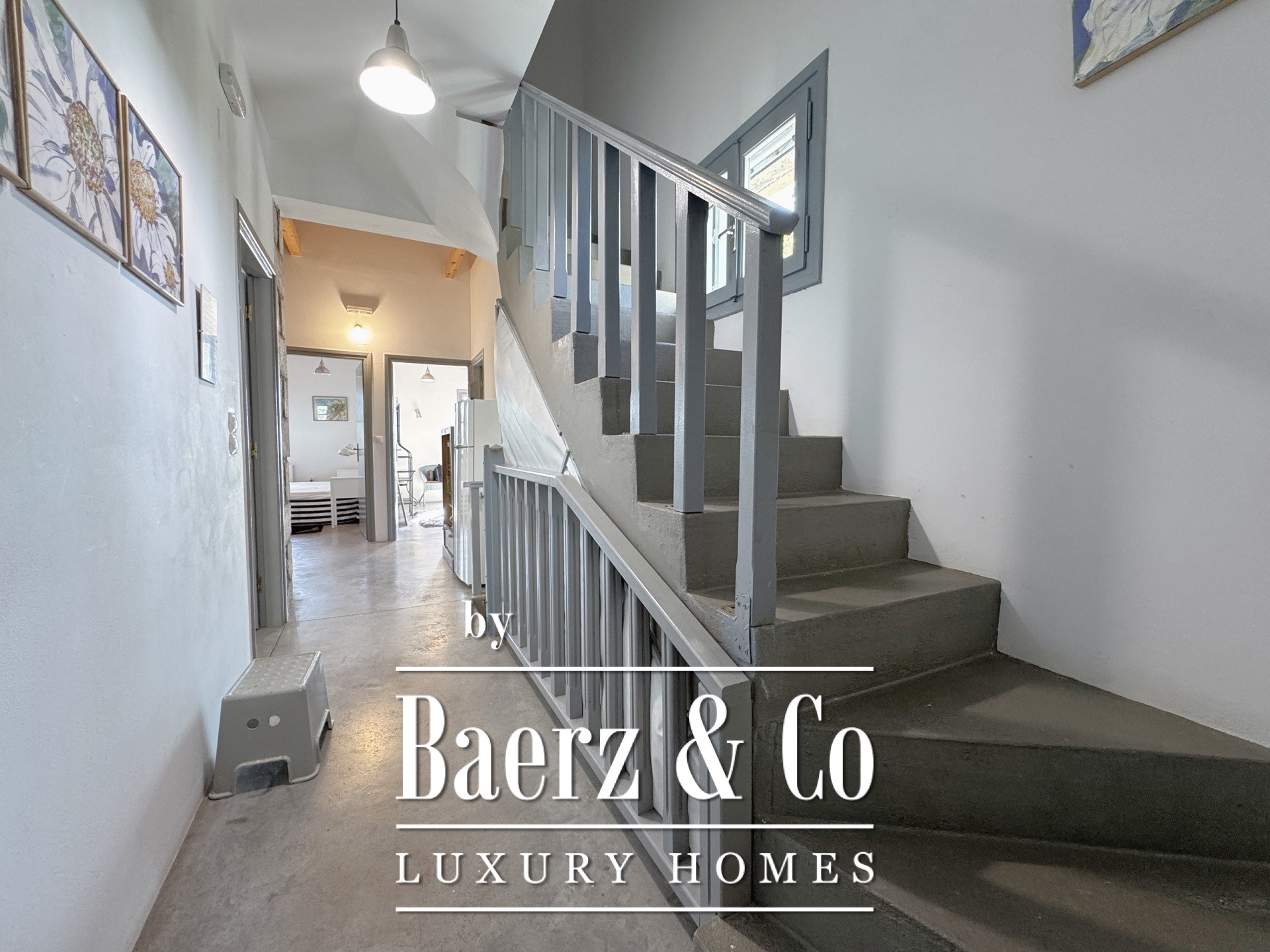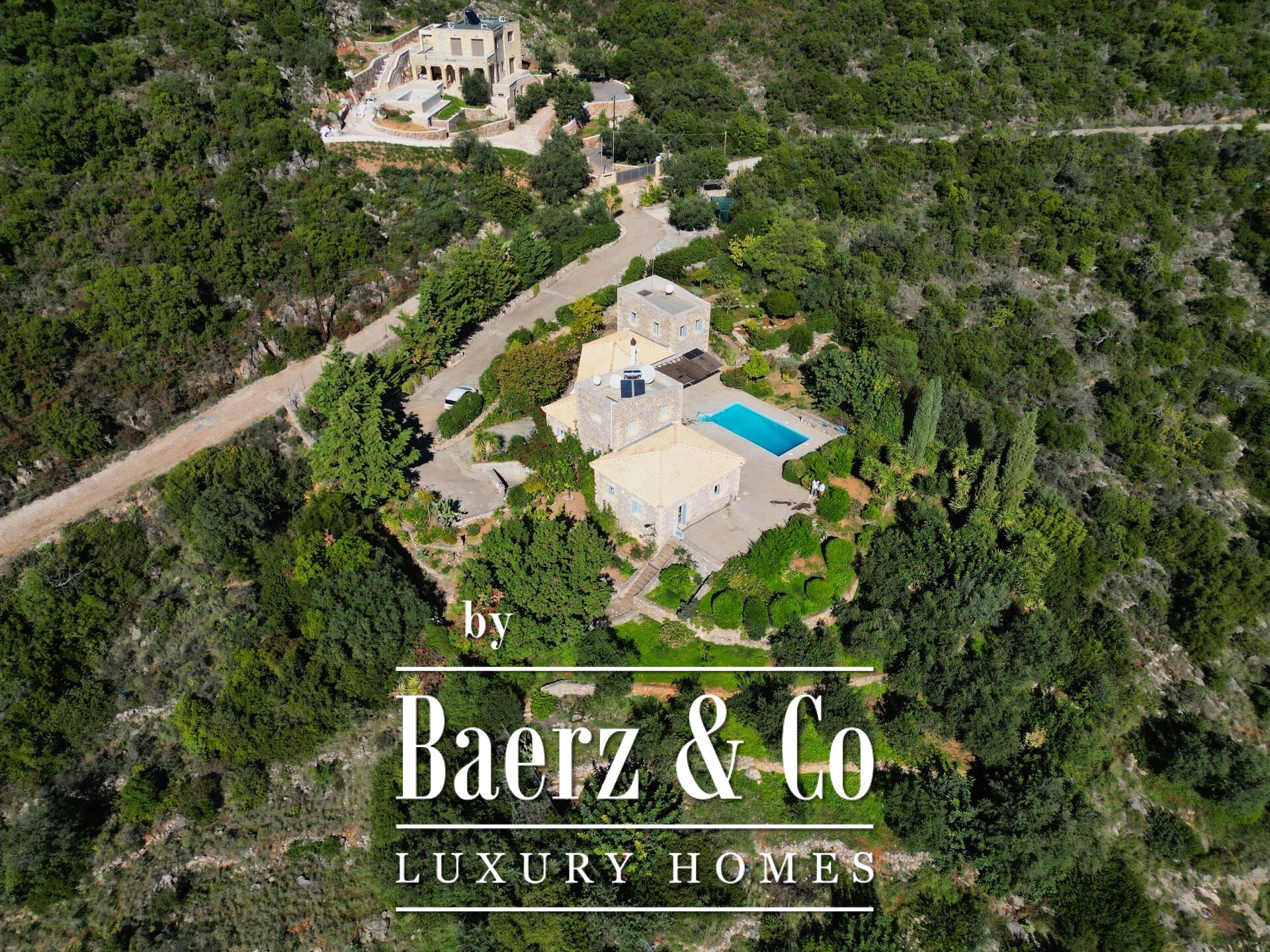 Особенностью резиденции выступает тщательная каменная кладка и продуманный дизайн. Первый этаж открывает просторную зону гостиной и кухни, пять спален и четыре ванных комнаты, каждая из которых отделана на высоком уровне, что обеспечивает приватность и комфорт для всей семьи и гостей. Внутренние коридоры ведут к двум отдельностоящим каменным башням, каждая из которых содержит спальню с уникальной атмосферой, создавая органичное пространство и редкий архитектурный ритм.
