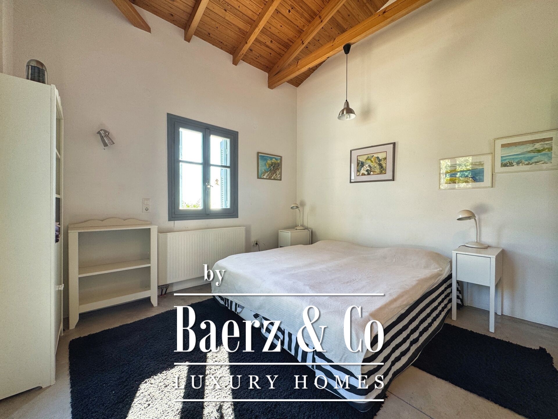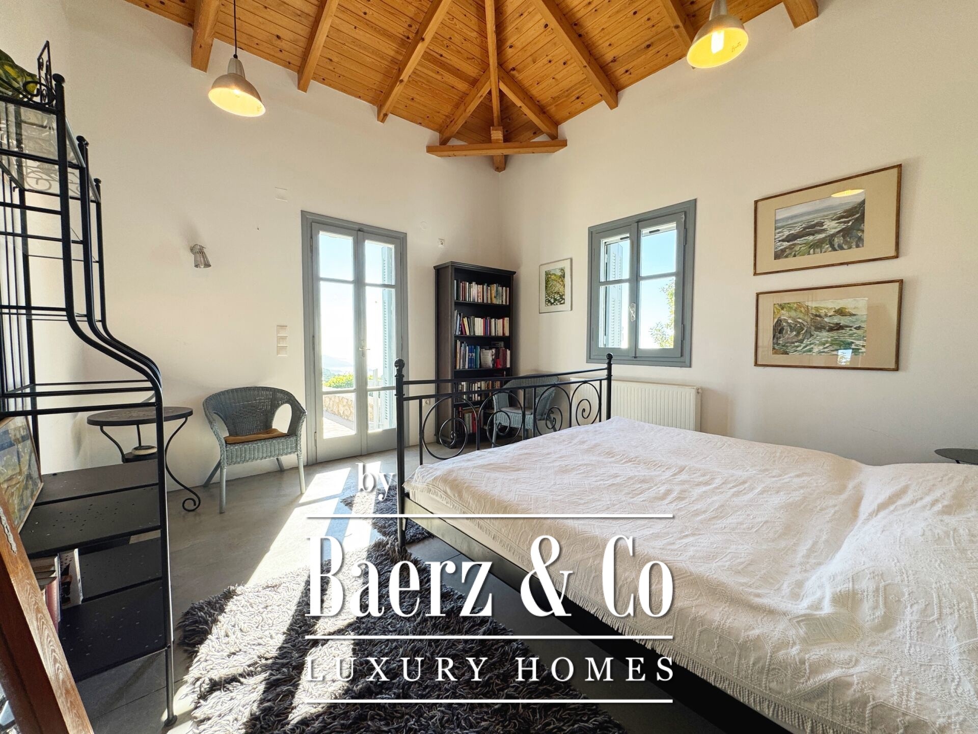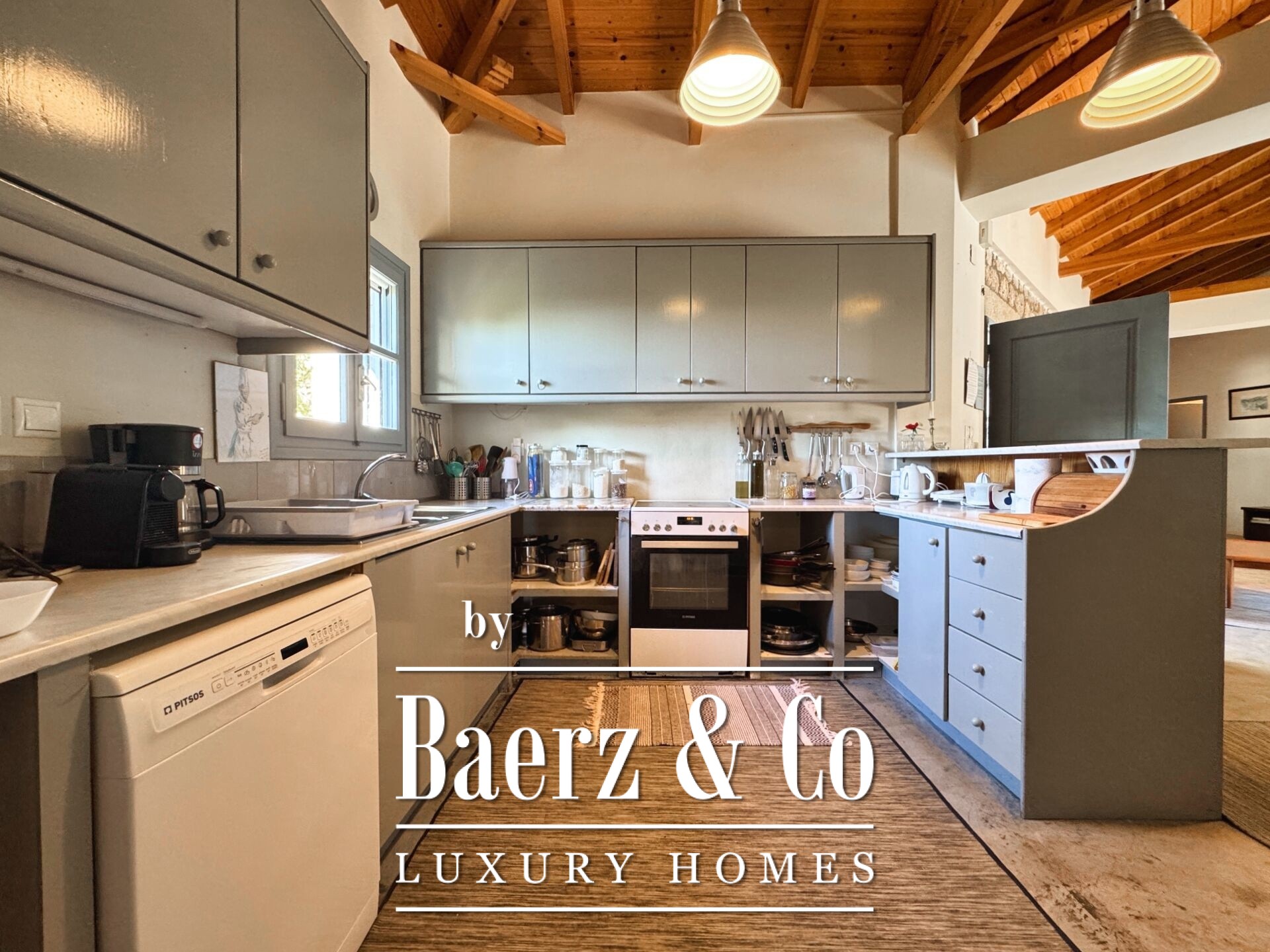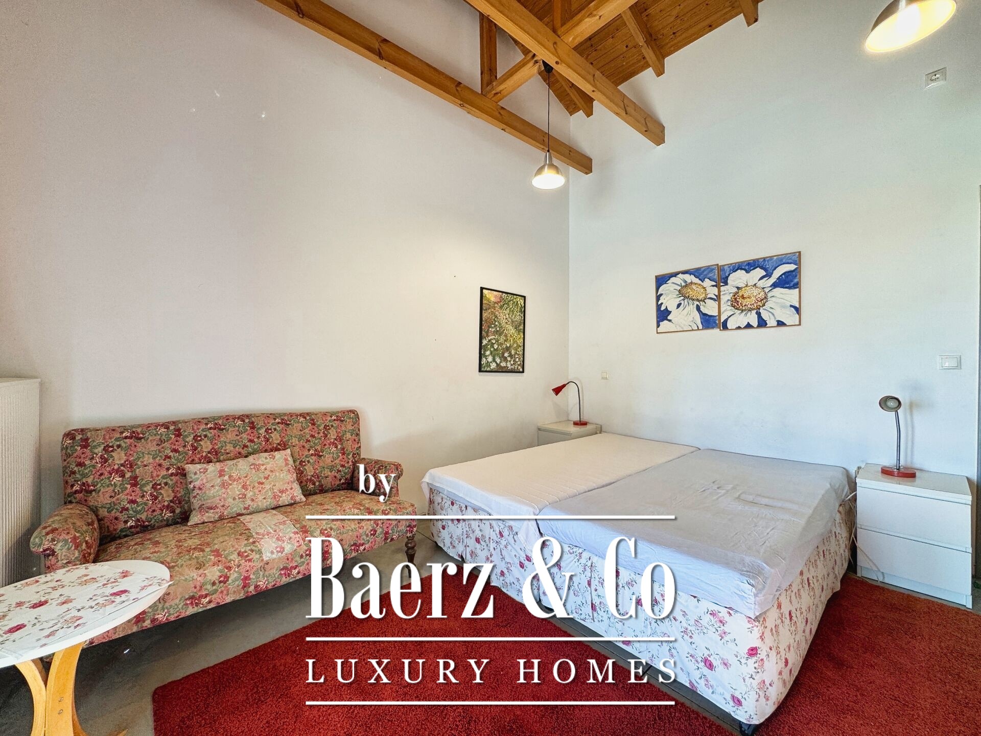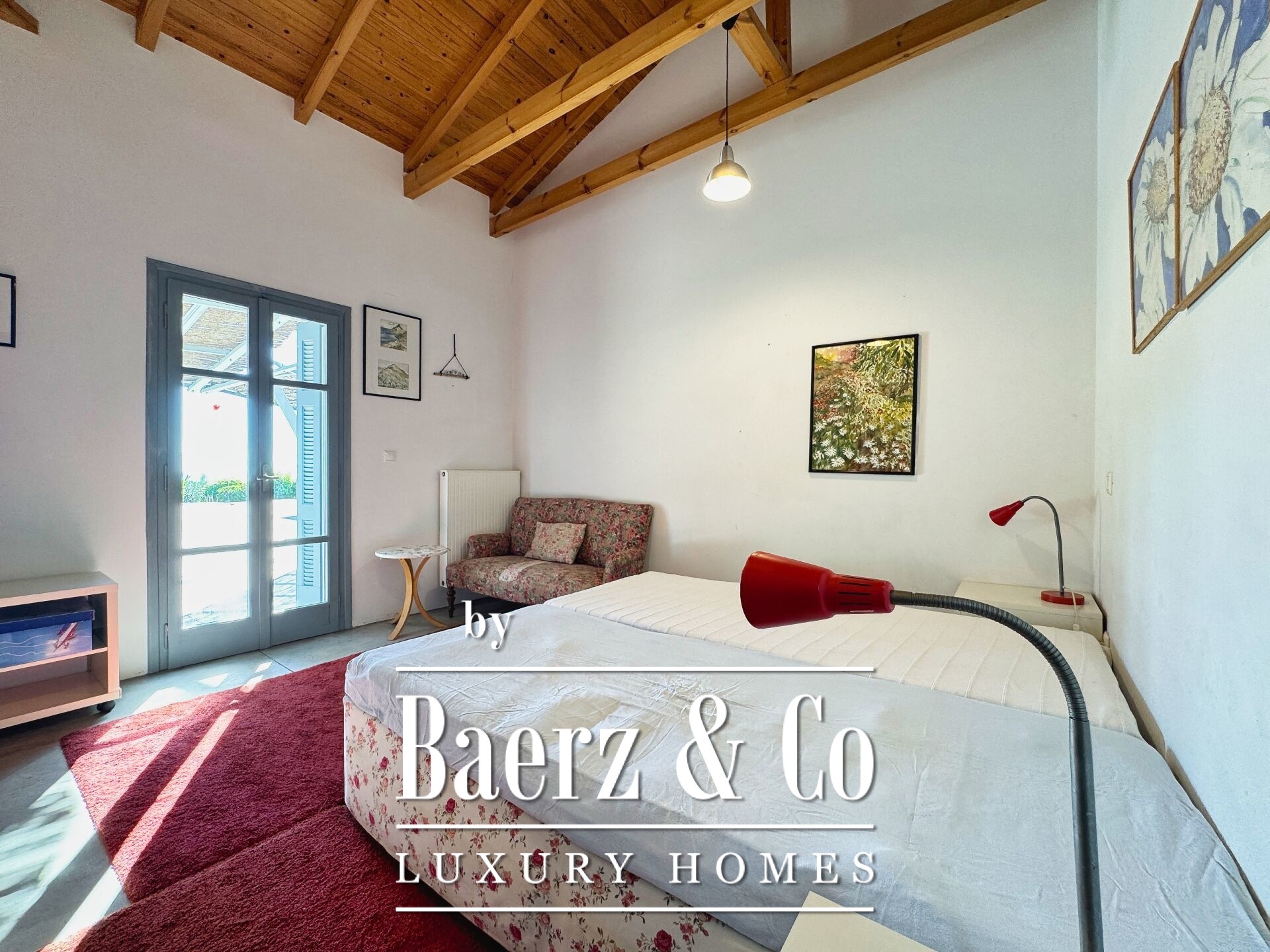 Особенностью резиденции выступает тщательная каменная кладка и продуманный дизайн. Первый этаж открывает просторную зону гостиной и кухни, пять спален и четыре ванных комнаты, каждая из которых отделана на высоком уровне, что обеспечивает приватность и комфорт для всей семьи и гостей. Внутренние коридоры ведут к двум отдельностоящим каменным башням, каждая из которых содержит спальню с уникальной атмосферой, создавая органичное пространство и редкий архитектурный ритм.