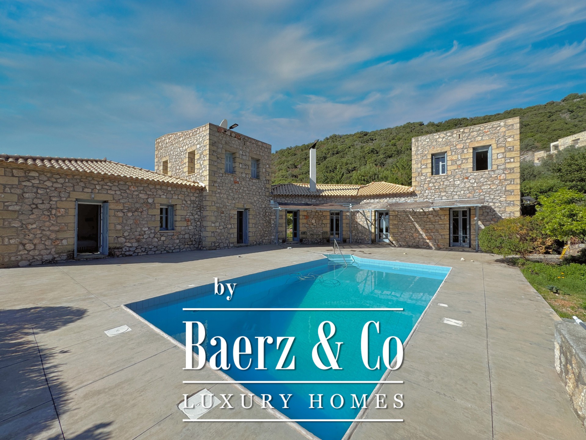 На этом же уровне предусмотрена открытая многофункциональная зона с собственной ванной, которую можно использовать как гостевой дом, велнес-зону или творческую мастерскую. На территории — частный бассейн, обрамляющий панорамный вид на горы и море, приглашая к спокойному созерцанию. Системы отопления — центральное, на жидком топливе, солнечное водонагревание и бойлер — создают комфорт для круглогодичного проживания. Эта роскошная вилла на продажу в Prosilio продолжает традиции Mani, предлагая дом с непреходящим качеством, приватностью и гармонией с природой и морем.