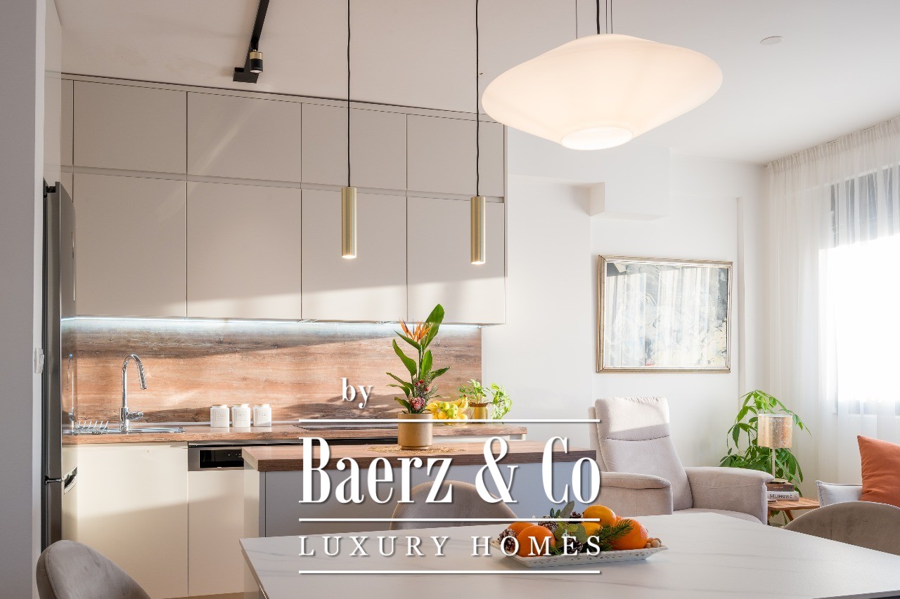 Планировка продумана для максимального погружения в средиземноморский стиль жизни: коридор ведёт в объединённую гостиную, кухню и столовую. Крупные окна обрамляют успокаивающий вид на море, две спальни и терраса наполняют пространство естественным светом и свежим воздухом в течение всего дня. Одна ванная комната и тщательно подобранная мебель создают атмосферу комфорта и готовности к заселению — как для личного проживания, так и для аренды.