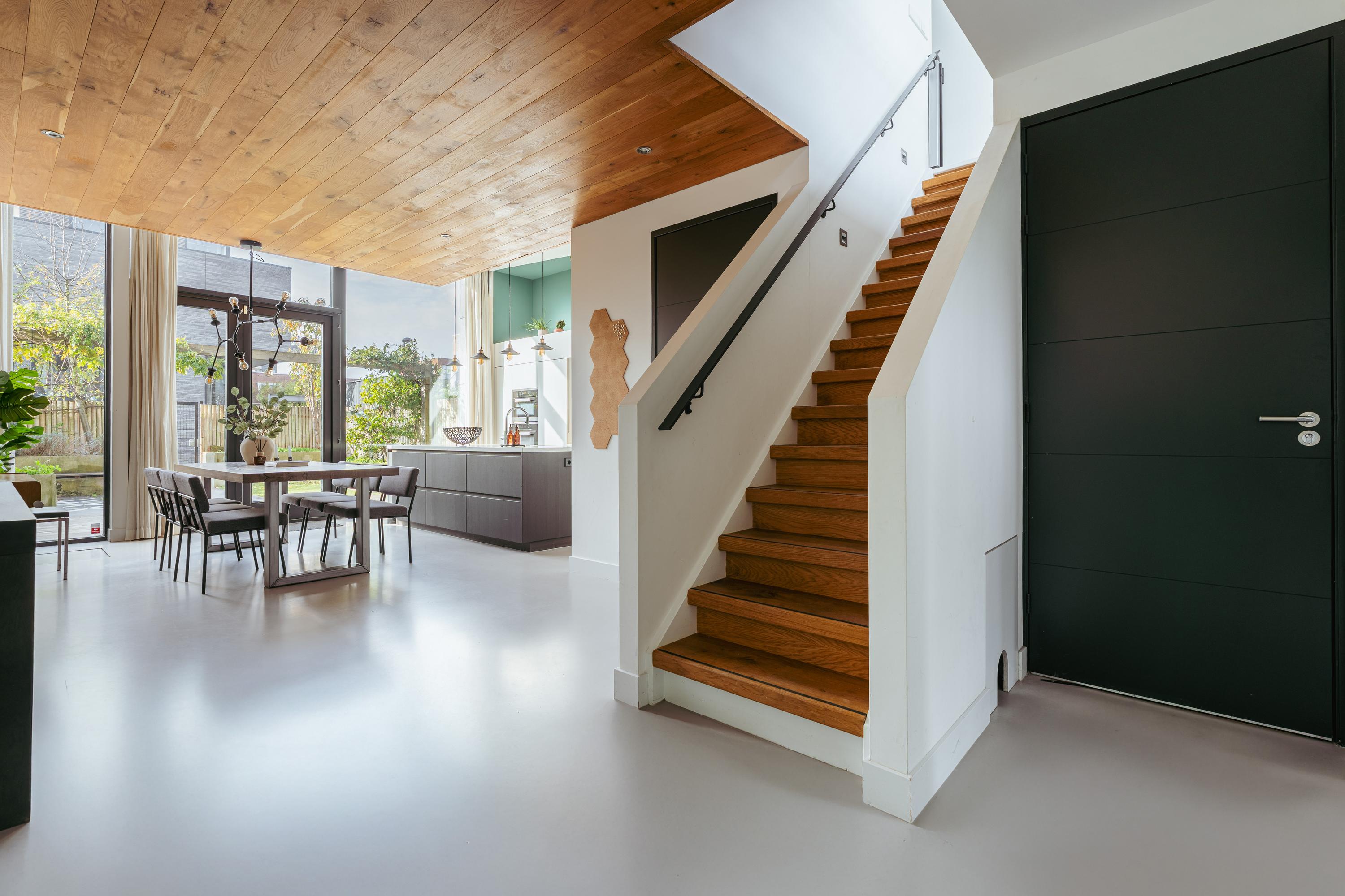 住宅设有五间卧室及两间卫浴,配备桑拿房、私密隔音影院以及多间可灵活使用的空间。约54平方米的南向花园通过法式落地门与开放式厨房无缝连接,既适合放松也利于社交。全屋地暖、高效节能HR++玻璃、区域供暖和17块太阳能板,共同打造无燃气、能源等级A的环保生活环境。配备室内双车位及电动车充电桩,完善居住配套。