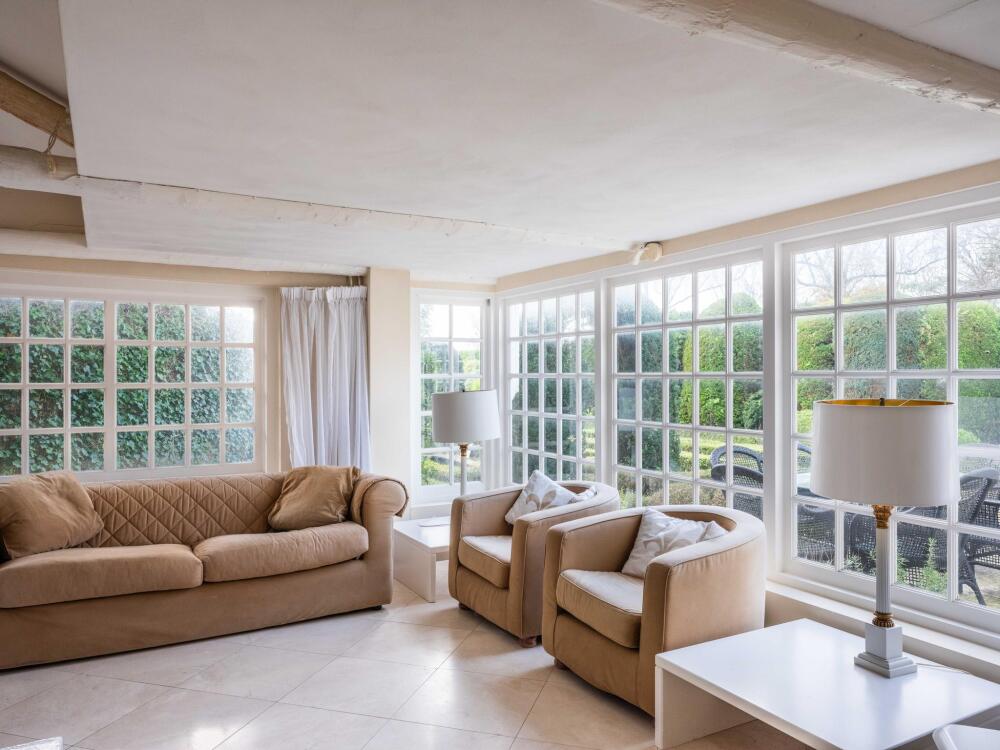 客厅内燃气壁炉为中心,裸露横梁与彩色玻璃窗彰显别墅传承。高挑天花保障采光充沛,相邻厨房配备全套嵌入式家电,并延展至具有现代便利功能的杂物间。二层主卧连接宽敞屋顶露台,可远眺乡间落日余晖。2018年翻新的二层浴室配置浴缸、步入式淋浴及双台盆。