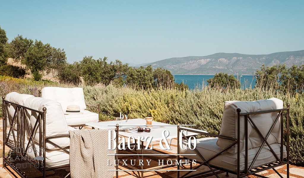 内部环境清新沉静,挑高天花板、壁炉与细腻收尾共同营造出安逸氛围。空调、宽敞起居空间、内设楼梯及丰富储物,为居住带来流畅舒适体验。户外空间坐拥橄榄树环绕的露台、花架、花园、烧烤区与私家泳池,各处皆与海景浑然相融。水天一色与广阔视野定义了别墅的体验,而大门则保证了绝对的私密。