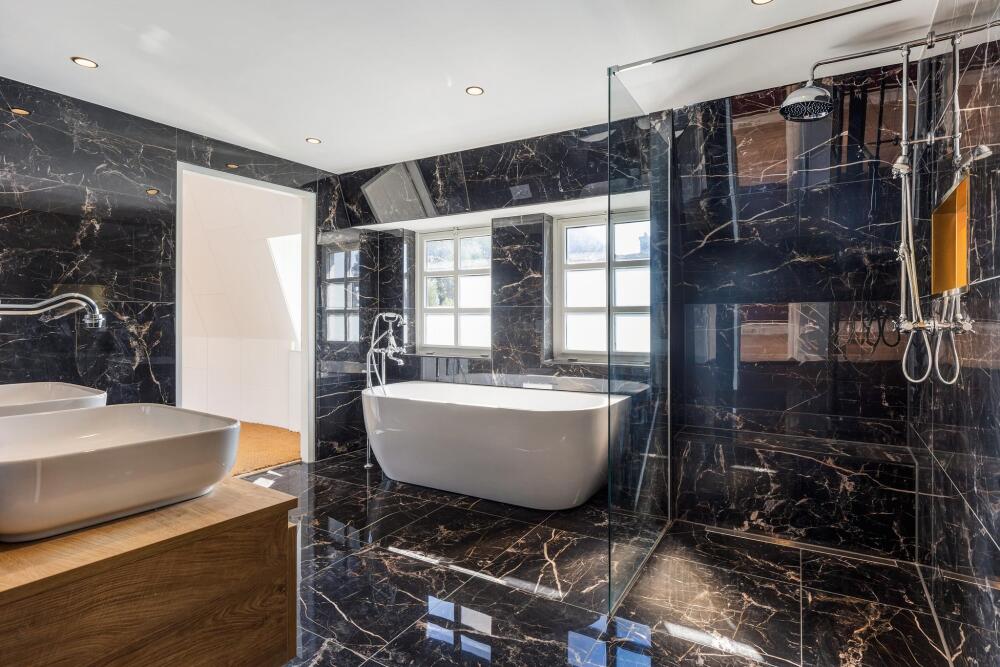 穿过双开入户门,明亮与温馨贯穿宽阔的门厅及套间式生活空间。Siematic厨房以橡木橱柜、黑色花岗岩台面与Siemens家电为特色,启发交流与烹饪灵感。Art Deco风格的橡木拼花地板与柔和色调的墙面相映衬,搭配原始天花板和经典墙板,展现独有韵味。
