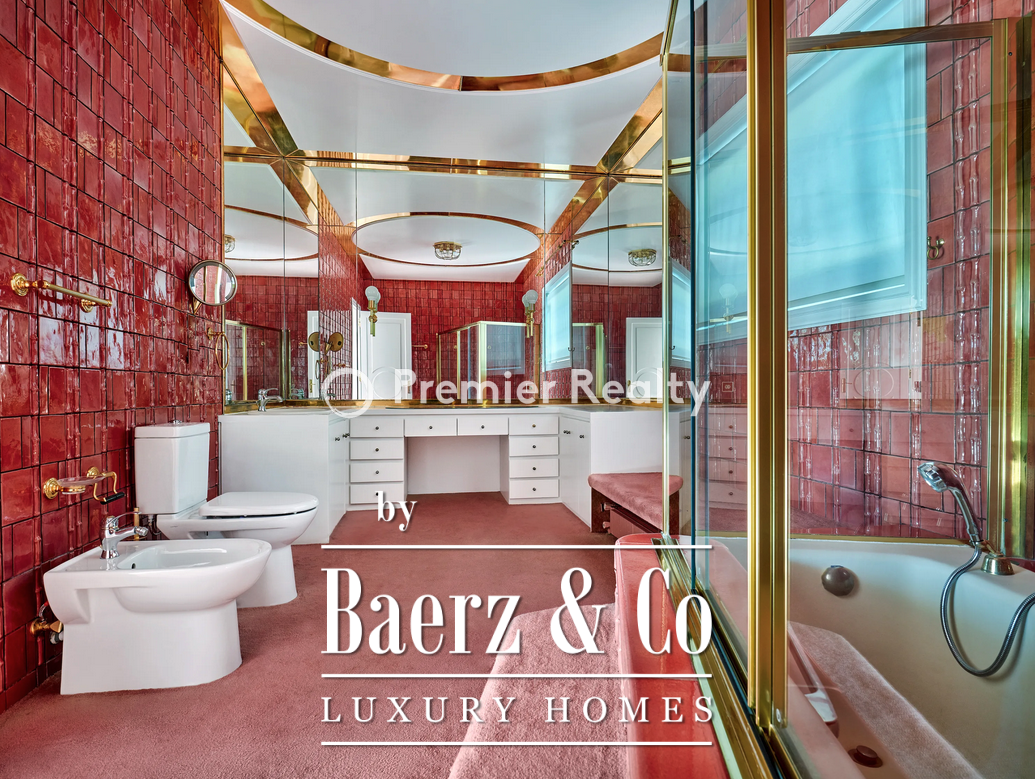 花园层设有宽敞的起居室、正式餐厅,以及带定制书柜与壁炉的书房。主卧套房配备步入式衣帽间,两间次卧均带独立卫浴。下沉层包括一间带卫浴卧室、储藏空间、洗衣房、安全室、佣人房与可容纳六辆车的停车区,彰显高端生活的精致与实用。