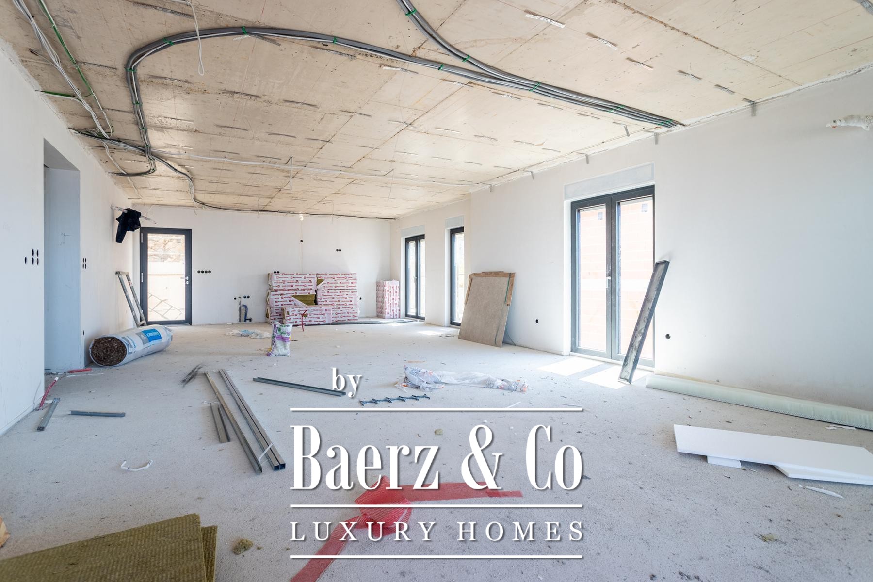 空间布局兼顾阔绰的会客区与静谧的私享空间,配备走廊、储藏室、洗衣房以及开放式厨房餐厅。室内装潢采用顶级实木地板与瓷砖、Schuco铝合金门窗,通过智能家居系统、配备热泵的地暖及先进的气候控制系统,营造出舒适宜人的居住体验。另有两个安全的车库车位可供购买。