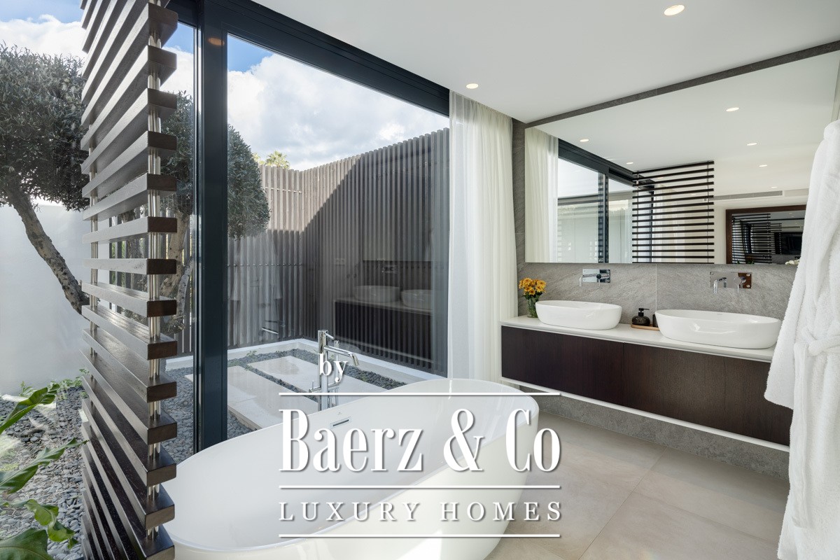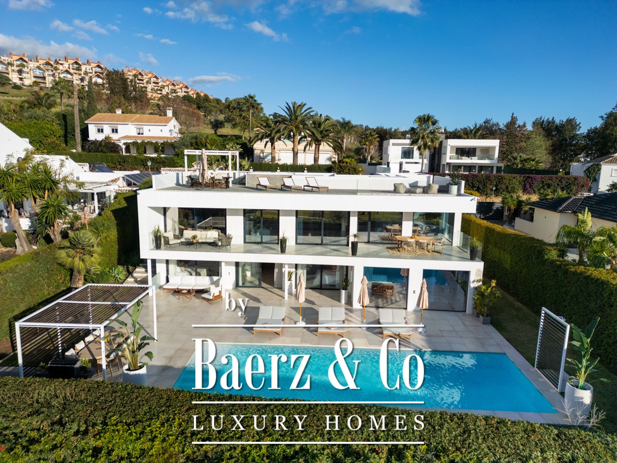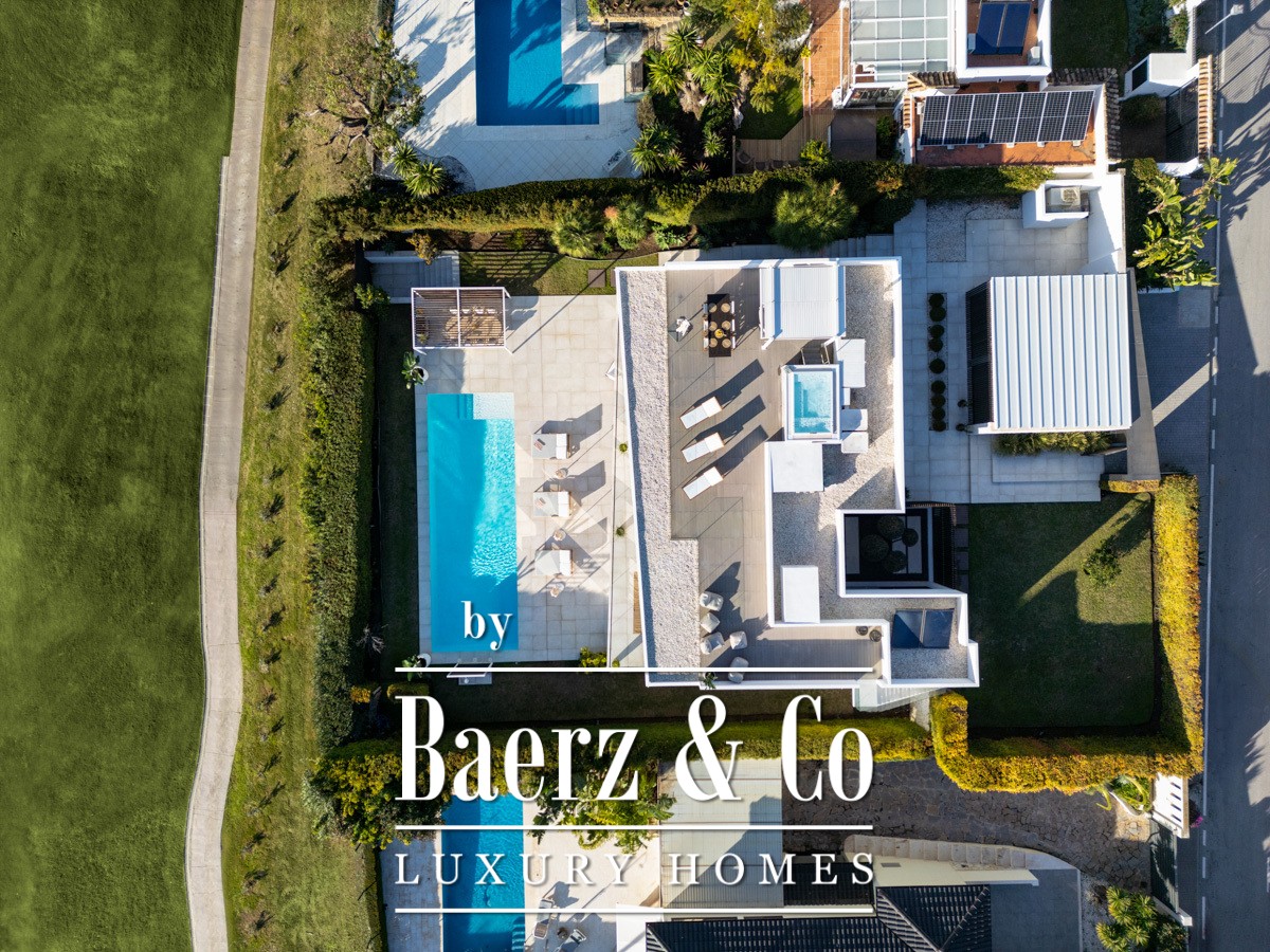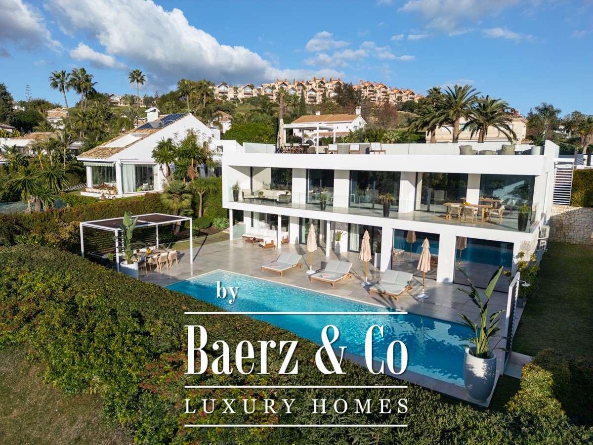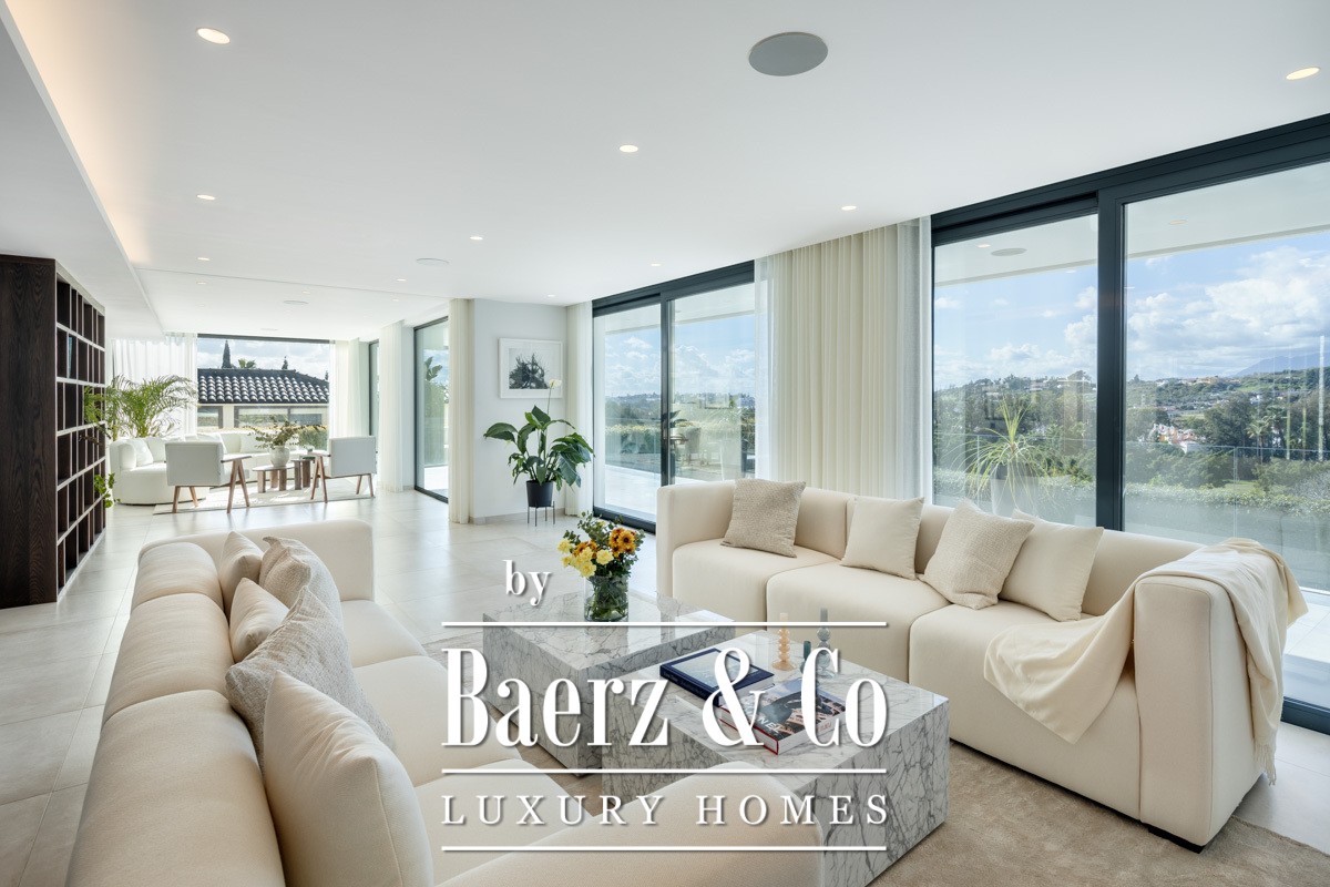 Marbella前线高尔夫Nueva Andalucía别墅,完美契合了现代设计与尊贵地段的稀有融合。这座现代化六卧四卫别墅,建筑面积342平方米,位于1090平方米的用地上。阳光充盈开阔的开放式空间,每一条线条与表面都展露出精致品味。私家露台自然延展,框景高尔夫球场及环绕山峦。日光浴区配备按摩浴缸,邀您静享悠然午后,私人泳池与烧烤露台则为社交聚会或安静休憩提供理想场所。