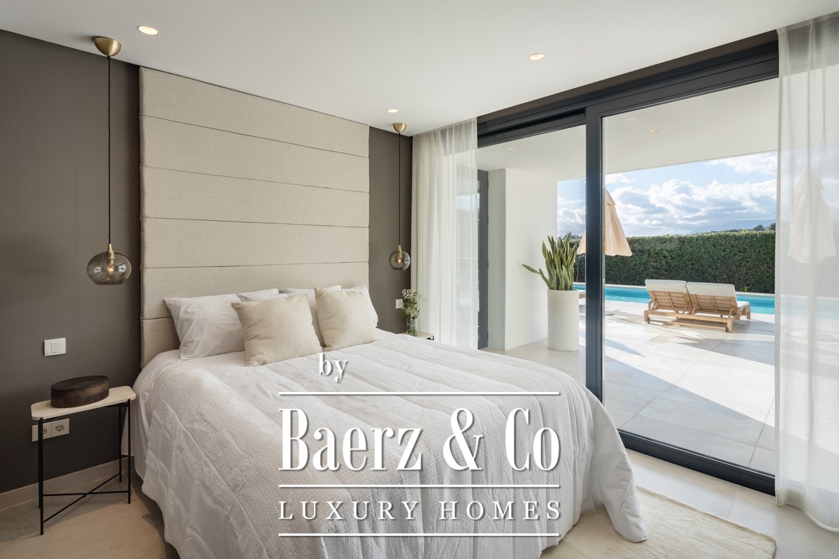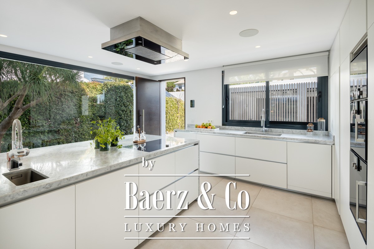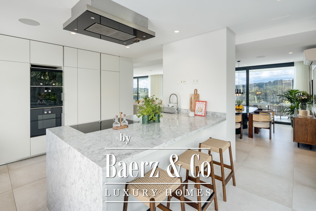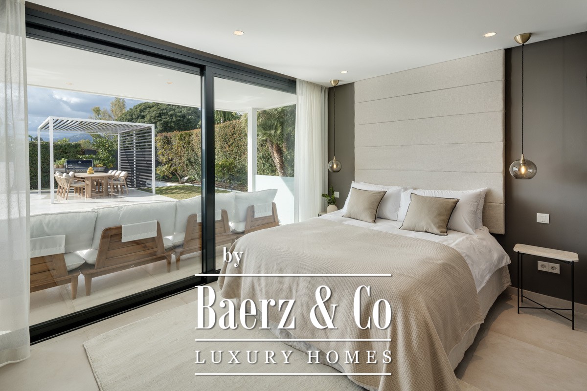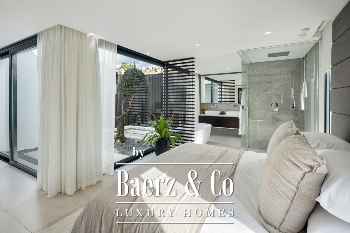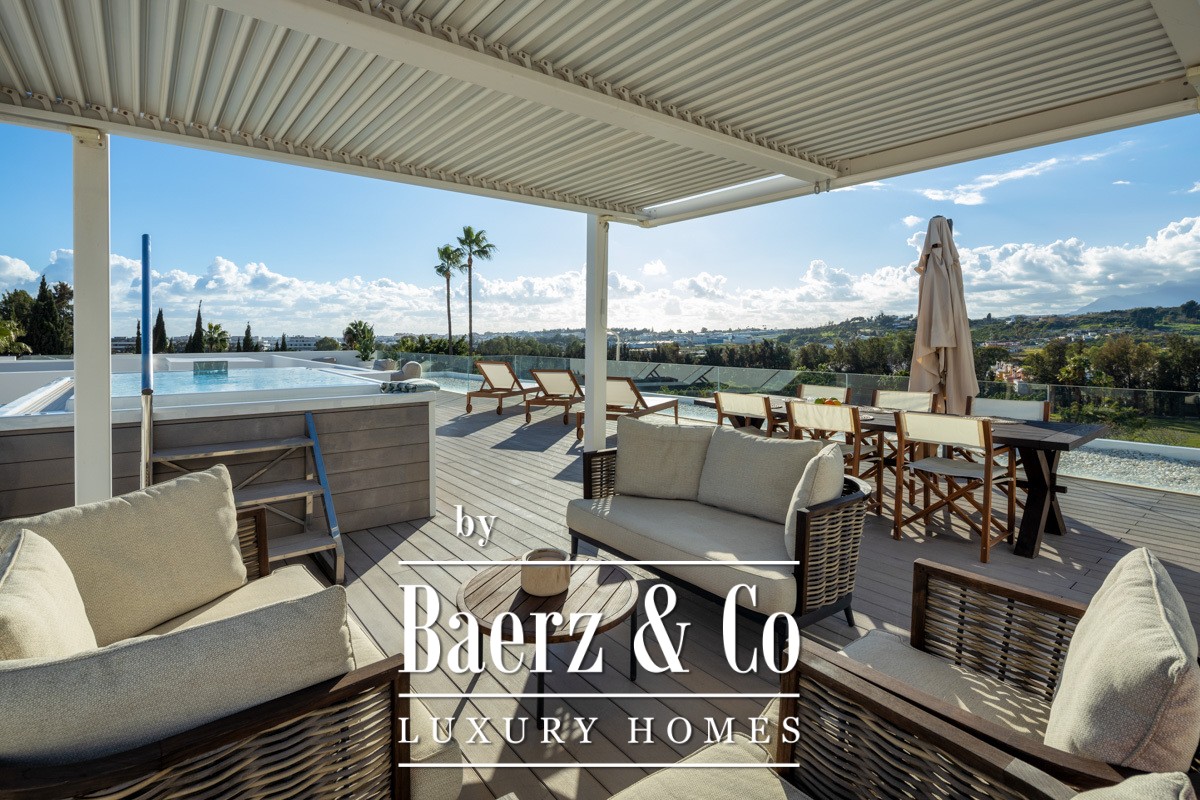 Marbella前线高尔夫Nueva Andalucía别墅,完美契合了现代设计与尊贵地段的稀有融合。这座现代化六卧四卫别墅,建筑面积342平方米,位于1090平方米的用地上。阳光充盈开阔的开放式空间,每一条线条与表面都展露出精致品味。私家露台自然延展,框景高尔夫球场及环绕山峦。日光浴区配备按摩浴缸,邀您静享悠然午后,私人泳池与烧烤露台则为社交聚会或安静休憩提供理想场所。