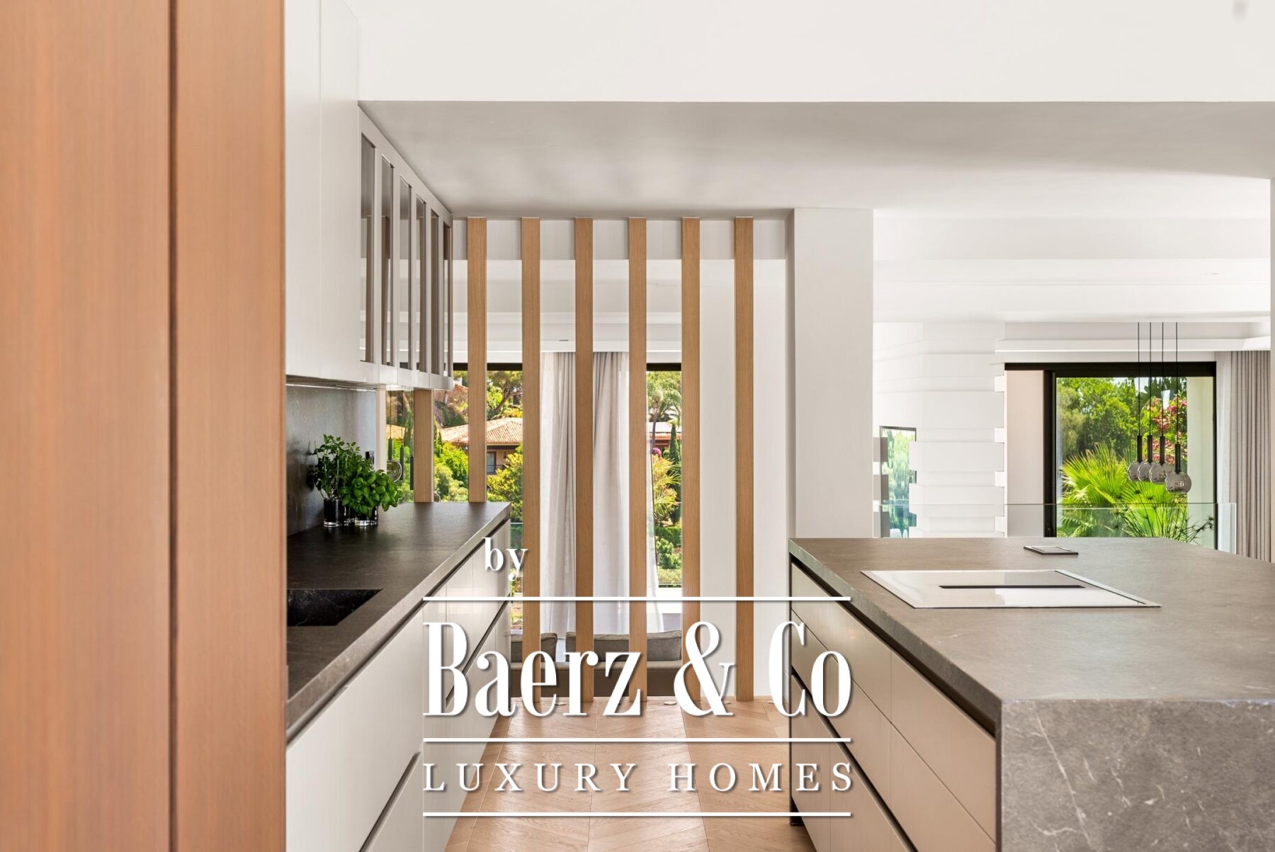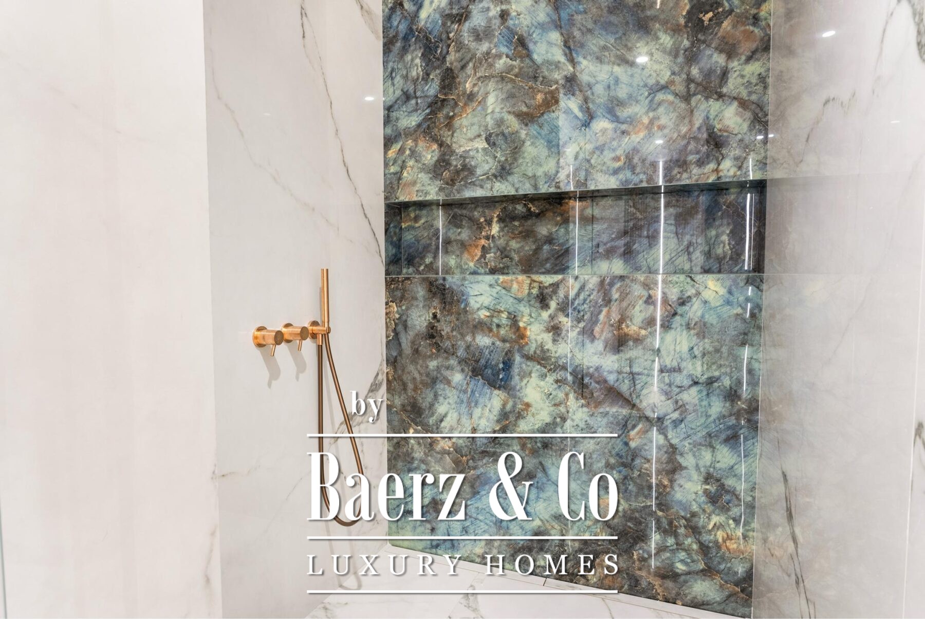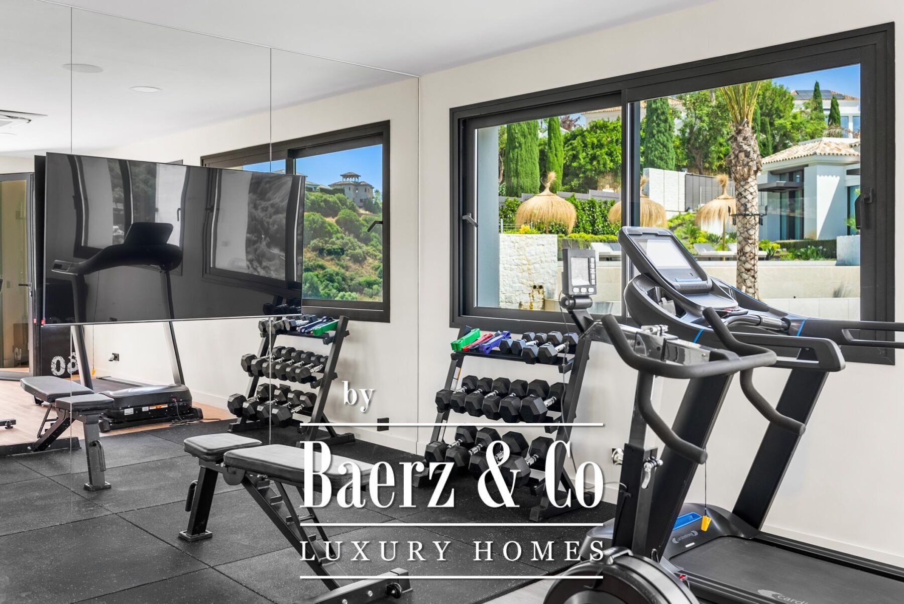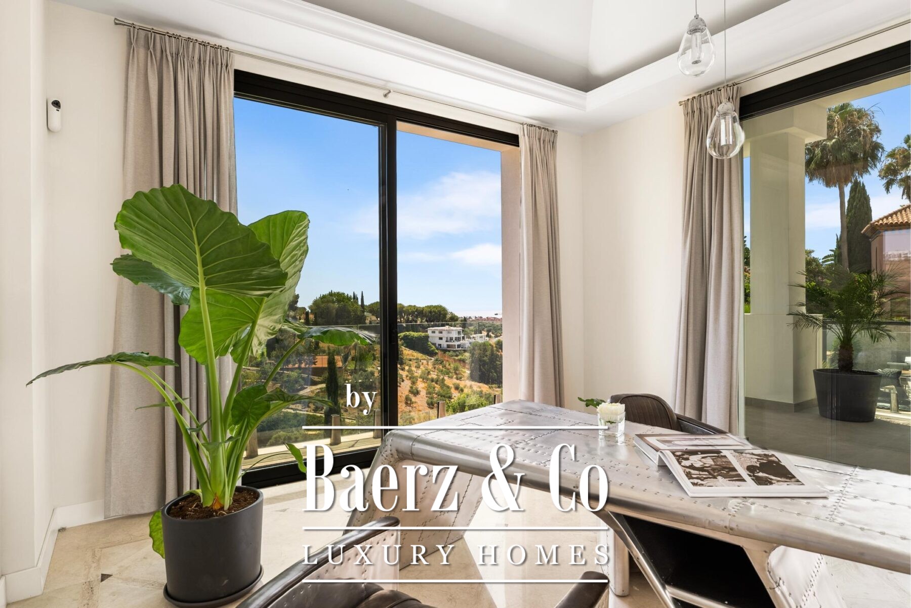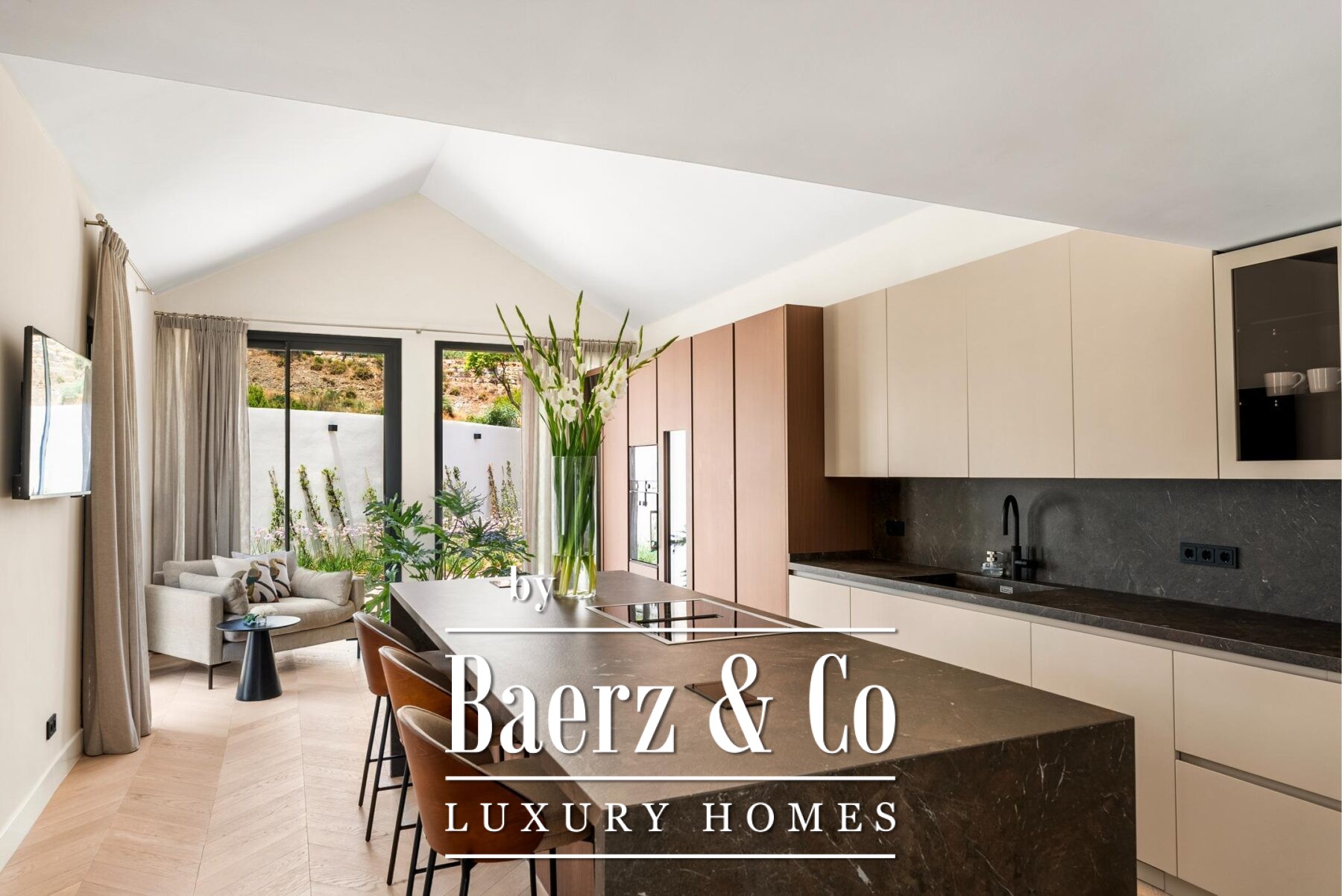 卫浴空间选用Gessi龙头及大规格意大利瓷砖精致铺设。户外园林环绕加热式咸水泳池及全年宜人的露台,户外小厨房和烧烤区增添生活情调。别墅配备三车位车库,额外车道停车位,并拥有24小时安保的私密社区。高尔夫、海景与山景交汇,成就宁静背景;毗邻Marbella丰富配套和海滩,生活便捷畅达。此Marbella待售别墅缔造精致家庭生活的新典范。
