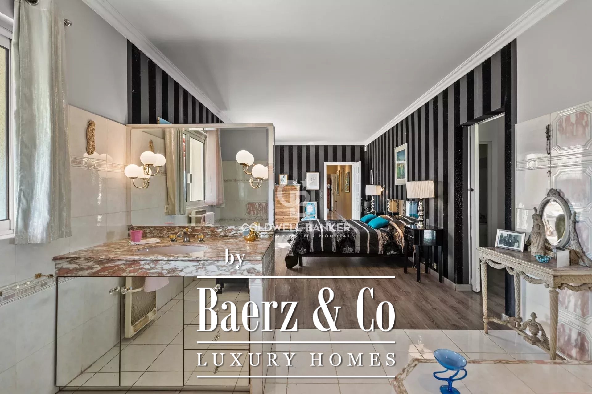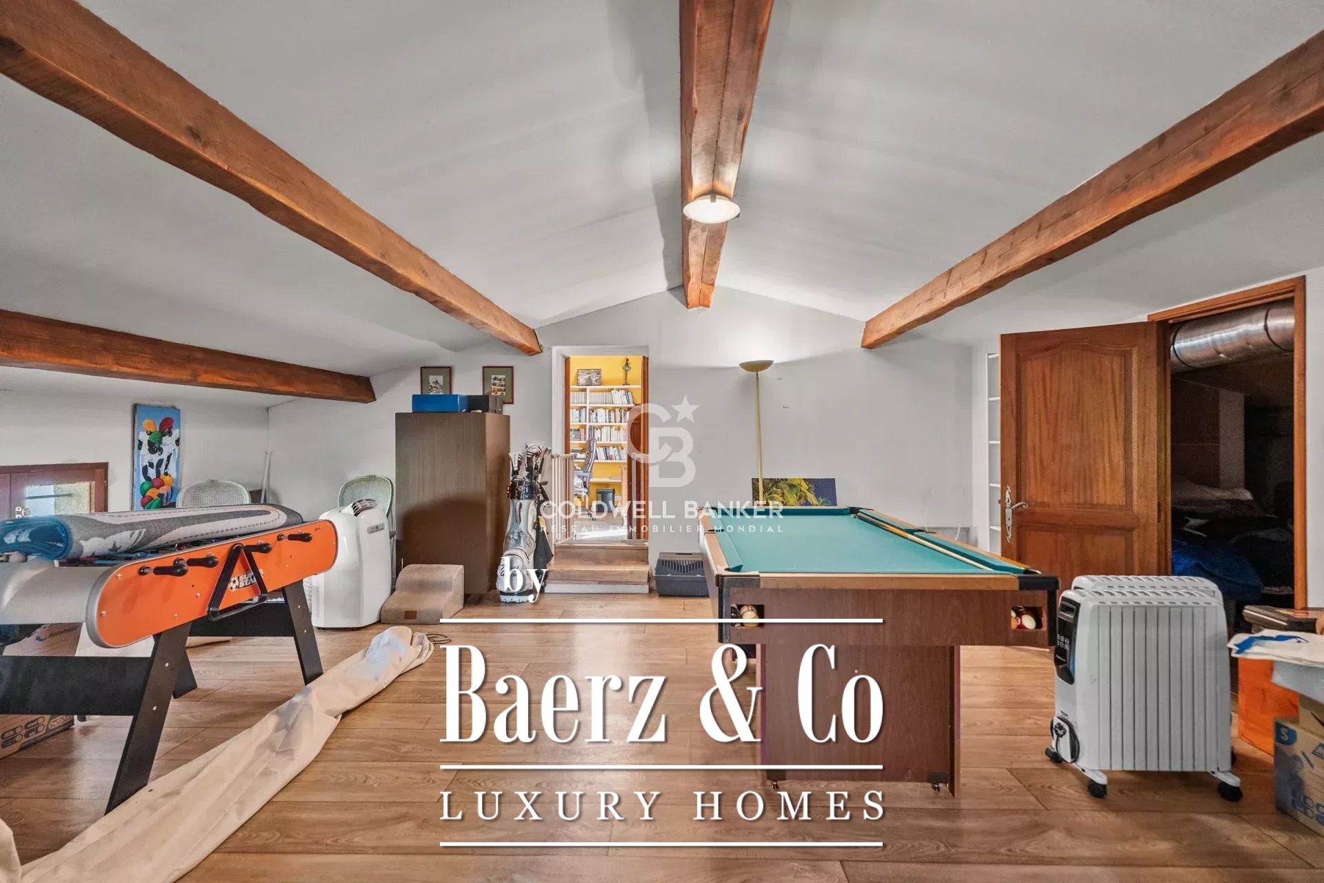 宽阔的露台延伸至精心打造的园林花园,与标志性游泳池相映成趣。370平方米别墅配备空调、壁炉、双层玻璃、报警系统与电动大门,安全隐私全面兼顾,细节设施周到。四车位车棚及60平方米独立车库,亦易于改造为客房或管理员居所,赋予更多独立空间。于Mougins待售的这座奢华别墅,以低调优雅,呈现海景圣地与隽永品质。