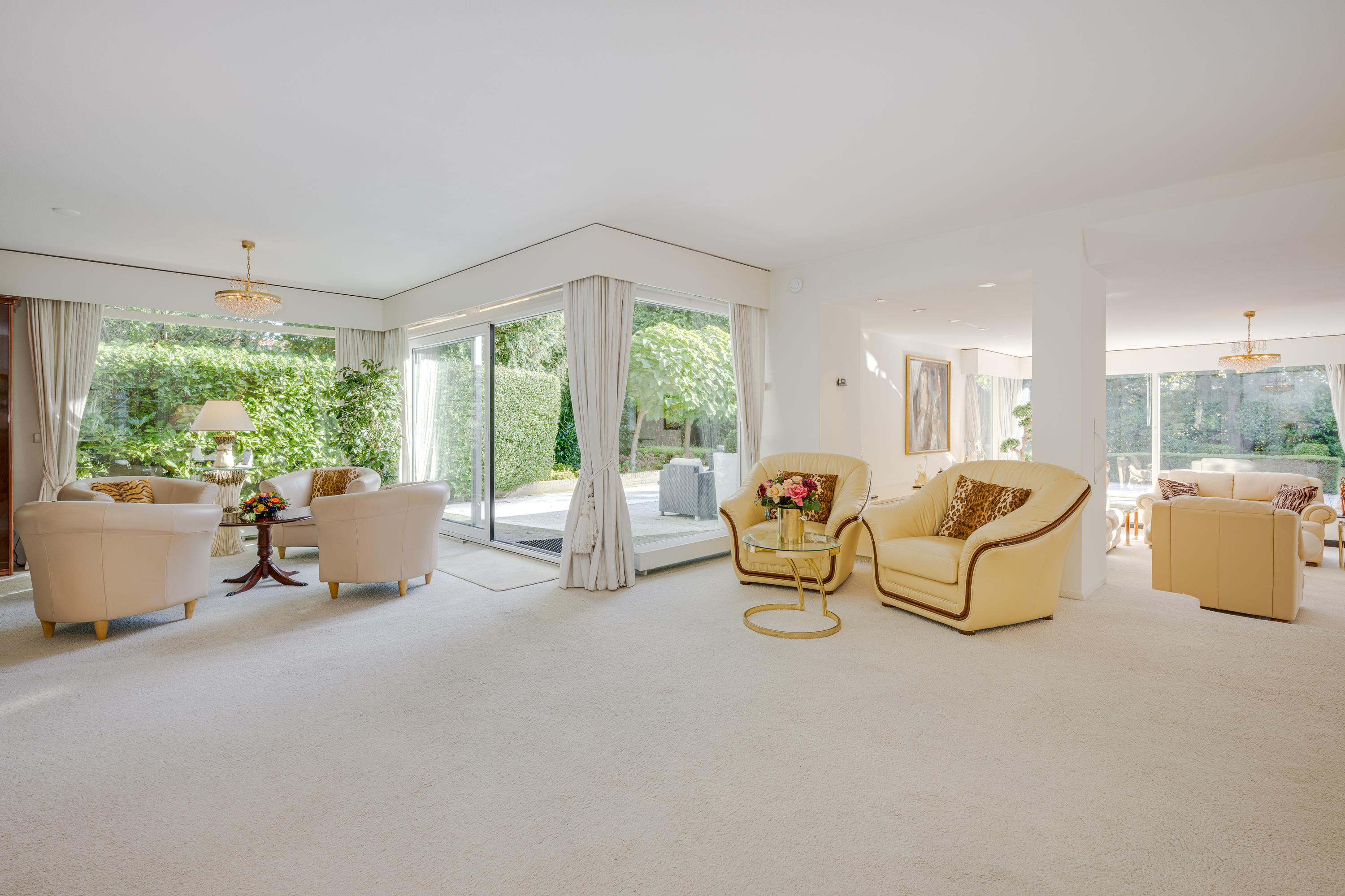 主楼入口设有气派的挑高门厅与宏伟楼梯,引领您步入奢华地毯包覆的起居、餐饮和家庭空间,三者总面积逾100平方米。高挑天花、大面积落地窗与推拉门,连接每一处生活空间至沐浴阳光的环屋露台,框定环绕成熟花园的安宁景致。现代舒适设施尽善尽美:先进的气候控制系统、机械通风、高规格隔热及Bang & Olufsen音响系统,赋予日常生活非凡品质。