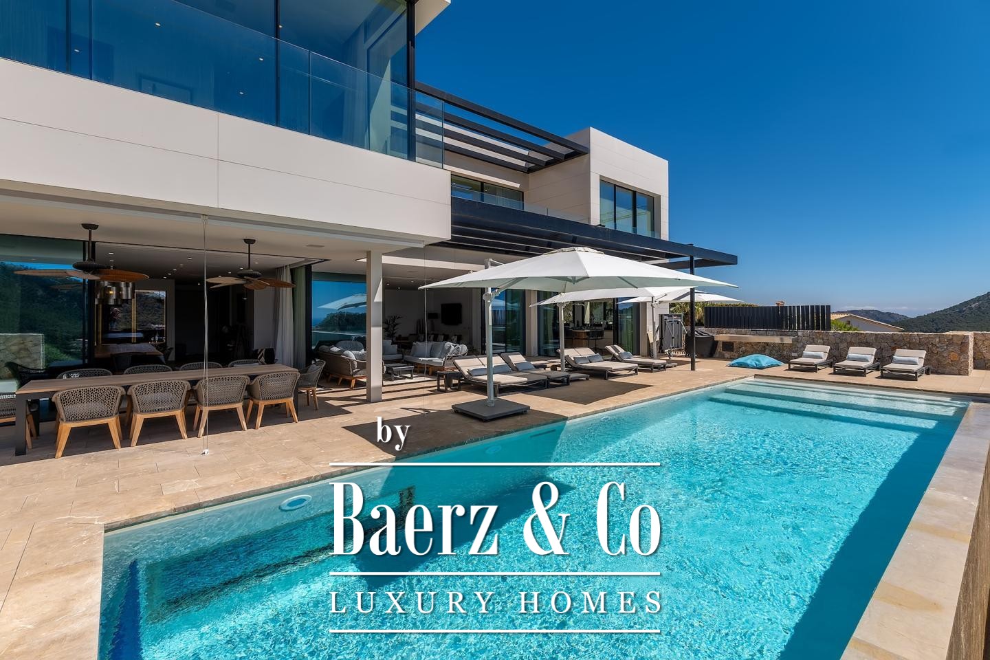 配备旋转车库平台、电梯、电动汽车充电设施与地暖等定制化便利设施。全屋气候控制与壁炉营造出宜人氛围,户外露台与私家泳池可饱览群山与地中海无垠景致。