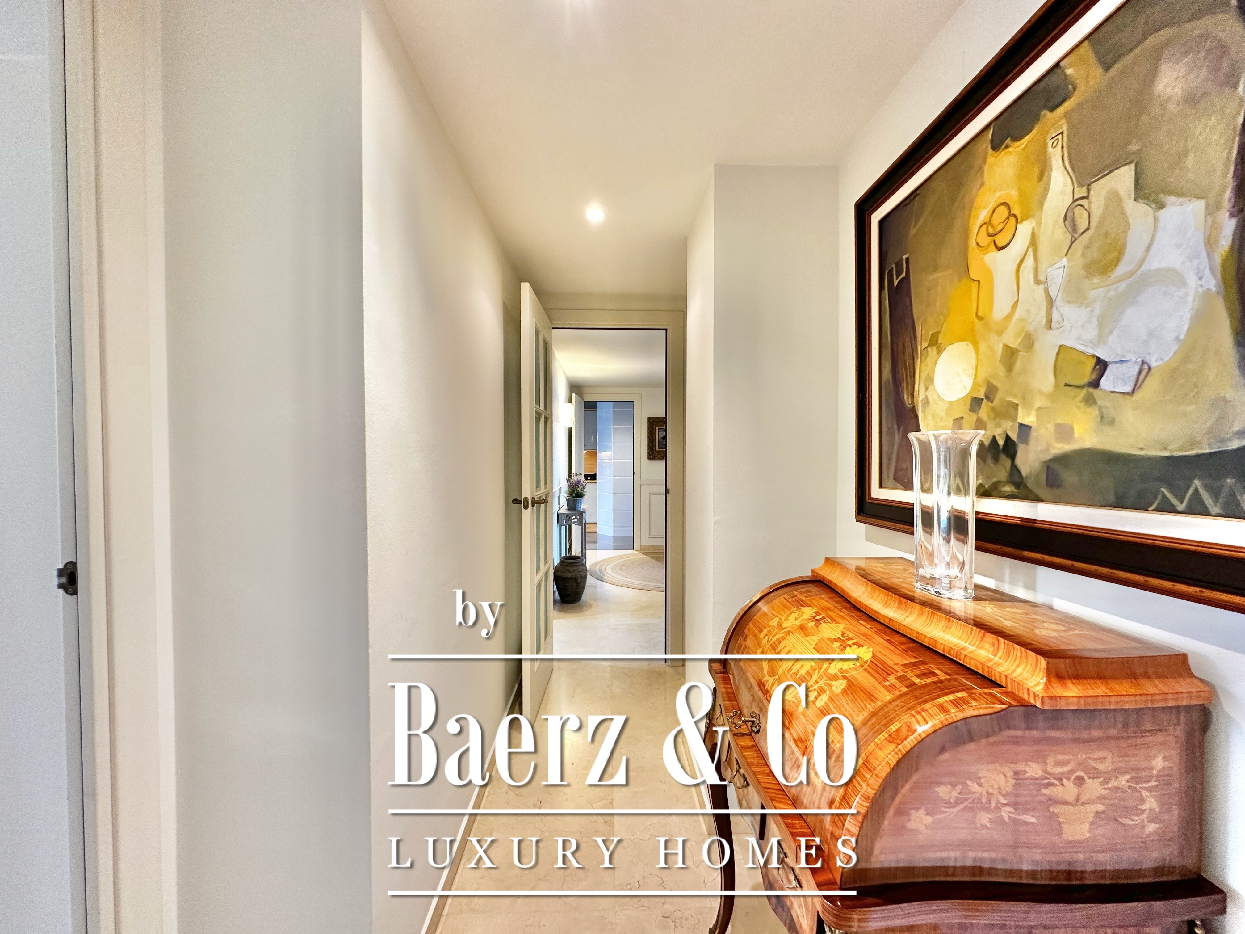 两处总面积71平方米的宽敞露台环绕公寓,一侧俯瞰静谧的公共花园,另一侧则直临海岸线,享受开阔景致。厨房与餐区兼具实用与开放感,通过被绿植环抱的露台与户外无缝衔接。房产近期翻新,并配备两个停车位和14平方米的储藏间。