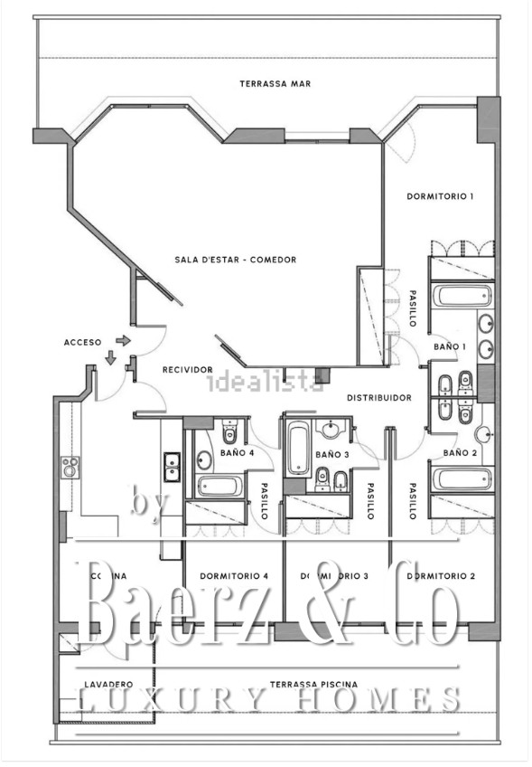 这套滨海公寓位于锡切斯备受青睐的Terramar住宅区,直通地中海。216平方米的空间布局精心考量,兼具舒适与低调优雅;每个房间均与室外相连。四间双人卧室均设有露台直通口与套内卫浴,空间节奏展现私密与海洋联结。主套房可从床上欣赏水天一色,主起居区则将充足光线和无垠天际引入日常。