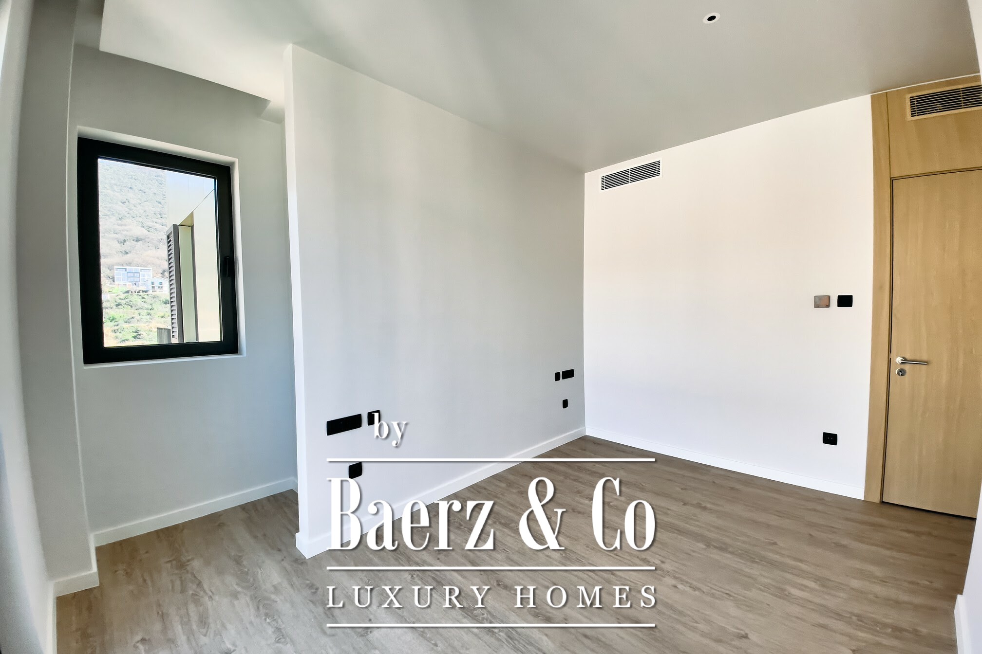 公寓位于现代九层楼宇的第八层,内部面积达80.26平方米,另有21.61平方米分布于两处露台。开放式布局将厨房、餐区与客厅连为一体。两间卧室、两间浴室及宽敞走廊完整勾勒出用心设计。充足的自然光线贯穿室内,尽显壮阔海景与山景,成为难得的尊贵住址。