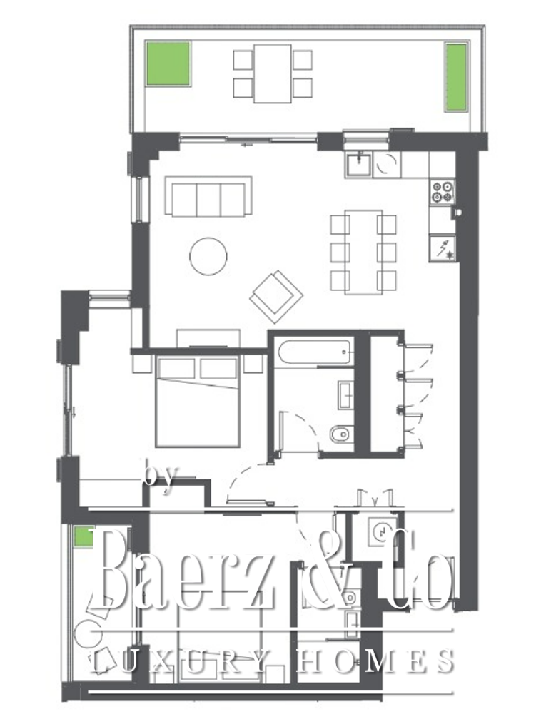 内部配置完善,厨房和浴室已配备,地板、瓷砖及空调安装完毕。公寓为毛坯交付,为业主个性化打造生活空间预留自由可能。凭借卓越地段与建筑规划,公寓兼具短租及长租投资潜力。